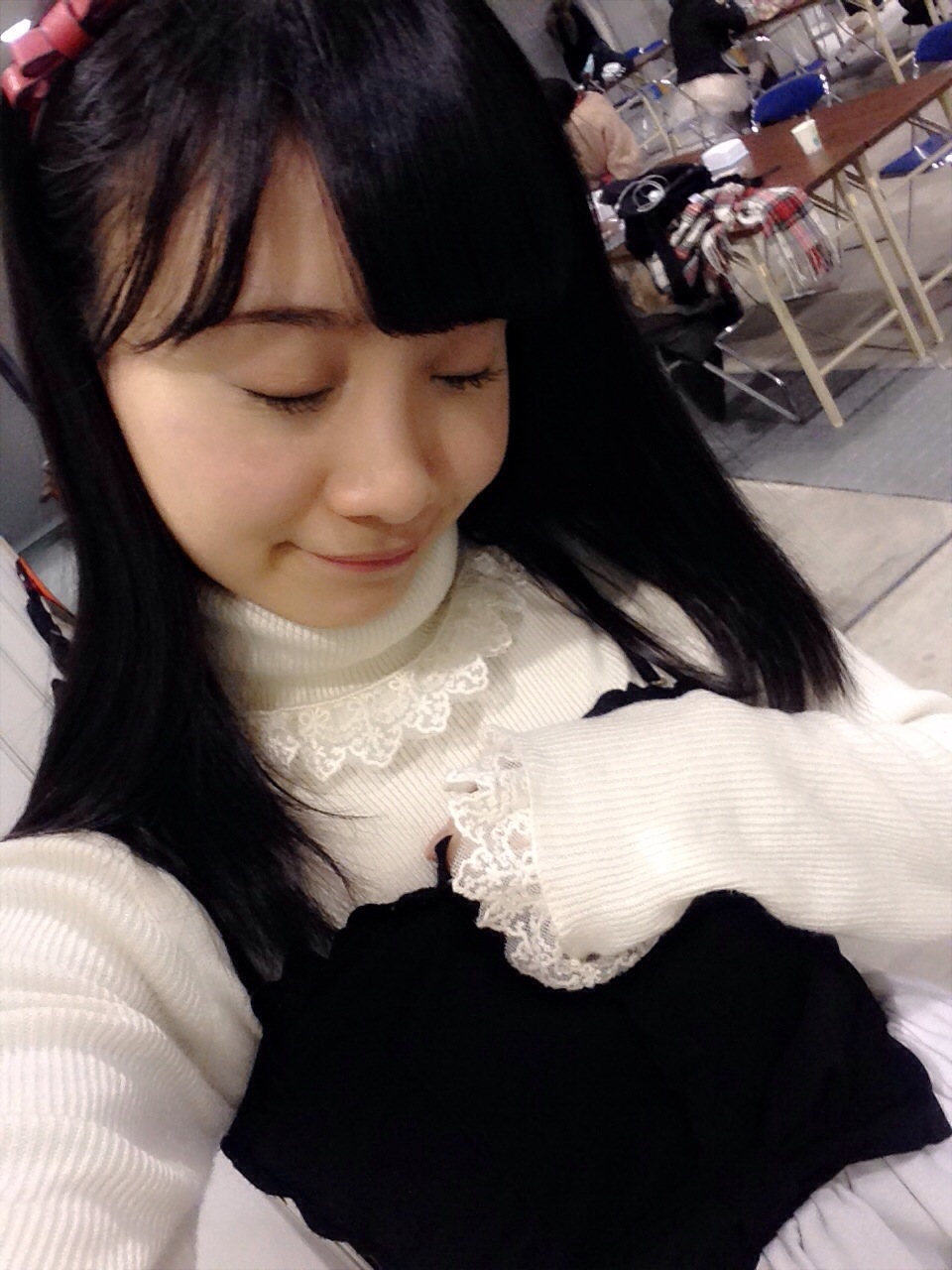 あやちゃん襟元もリボンがダルンダルン。ロッカー汚いのと関係あるのかな