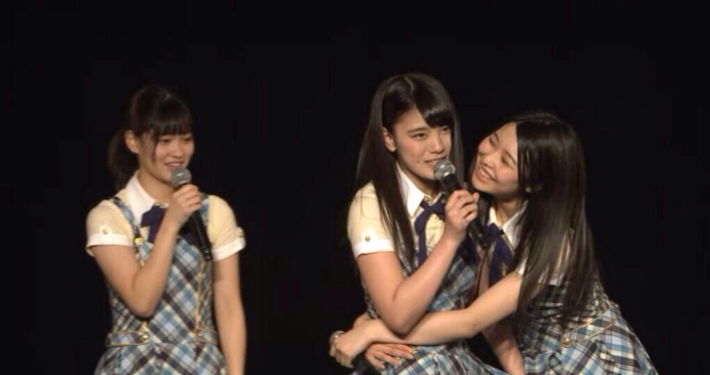 研究生公演のあんみ、はるたむ、りおん、の背中から抱きしめては最高にカワイイです。