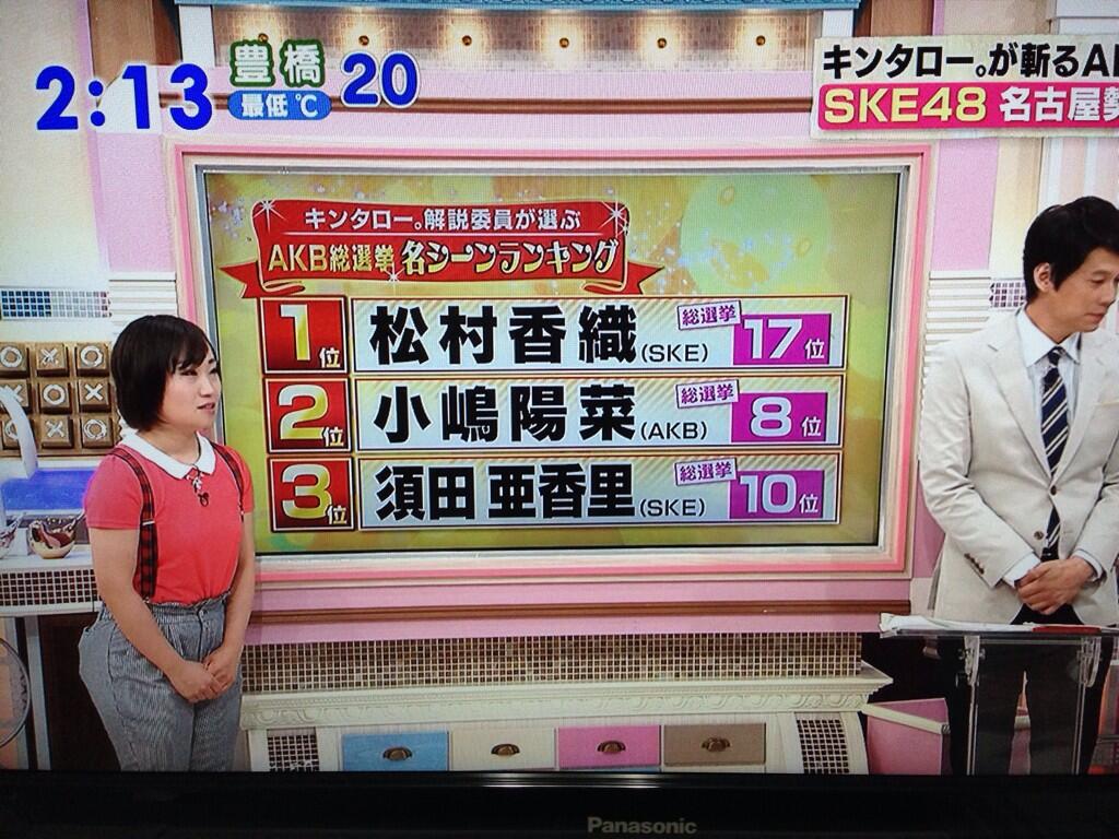 これ見てたけど、かおたんのスピーチは「とっても悔しいです」の一言しか放送されてない(こじはるもだーすーも一言だけ