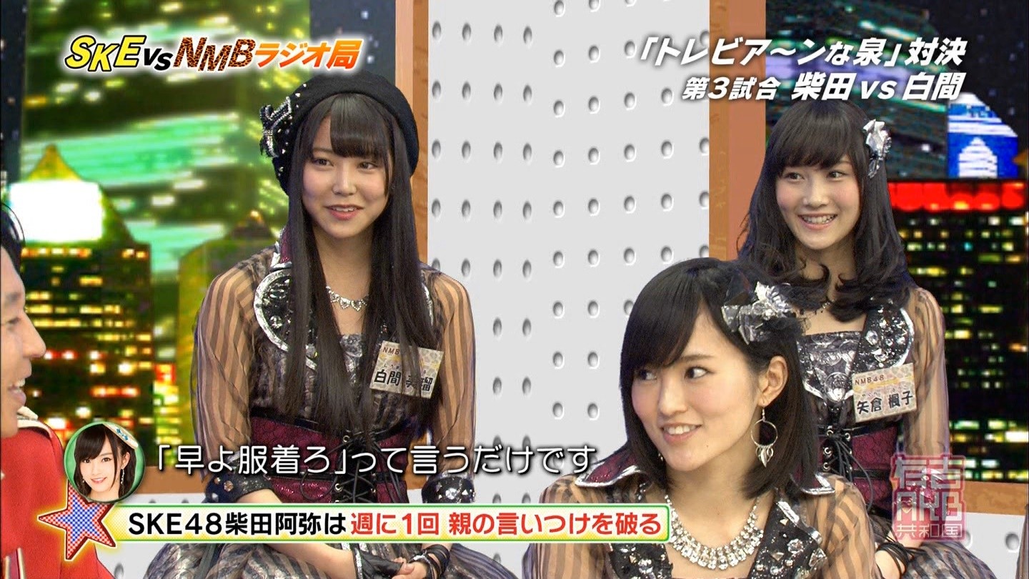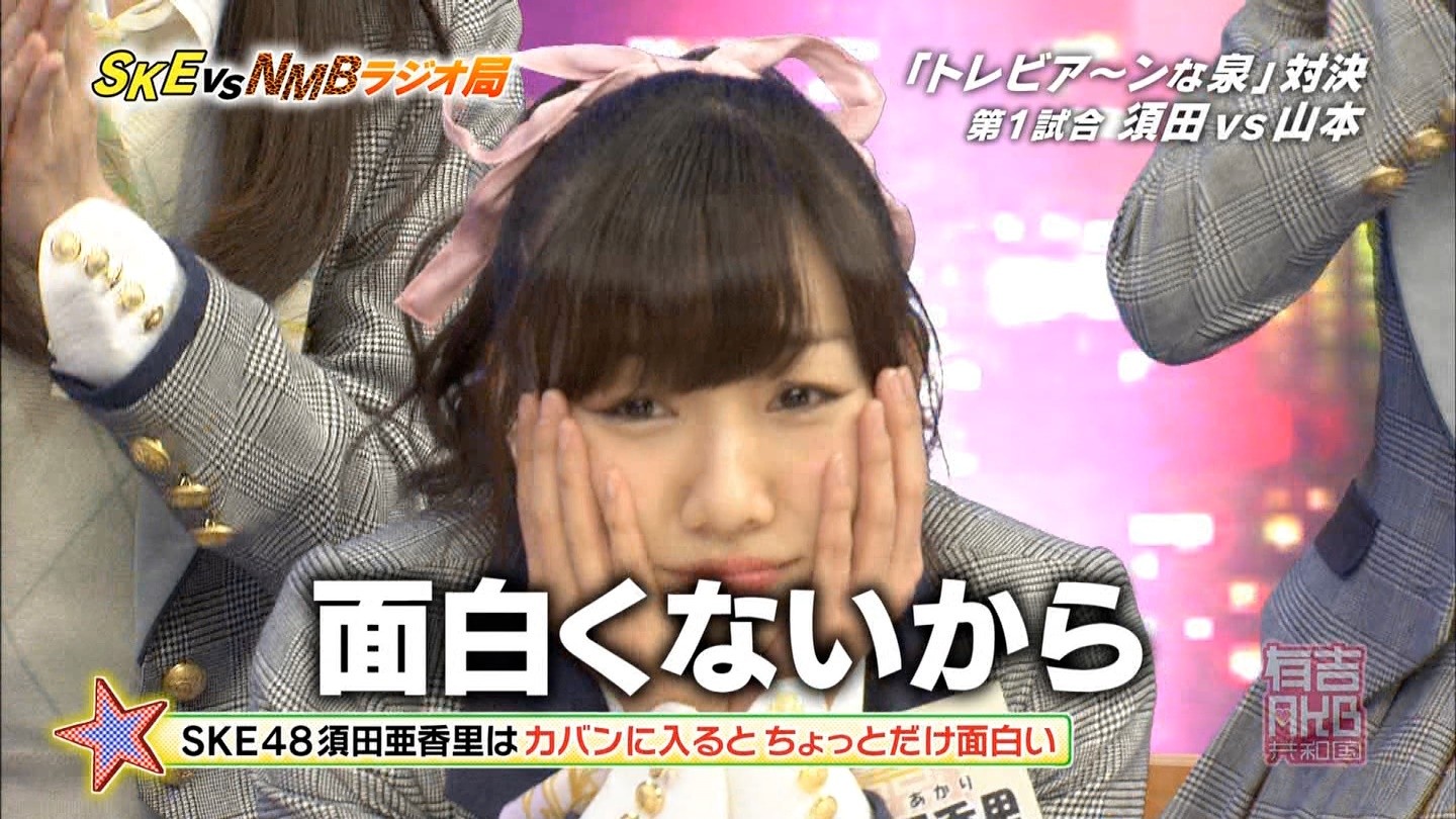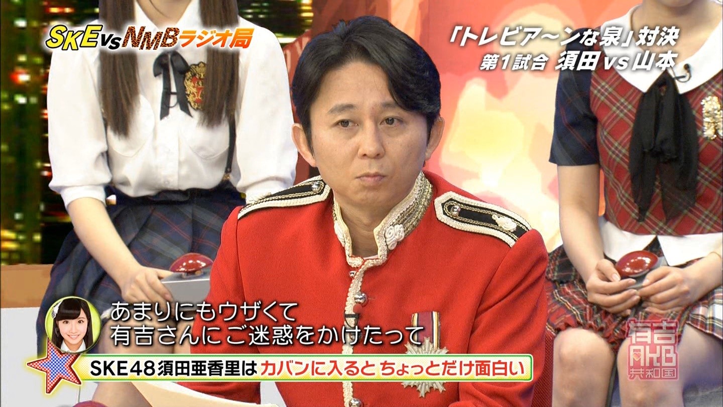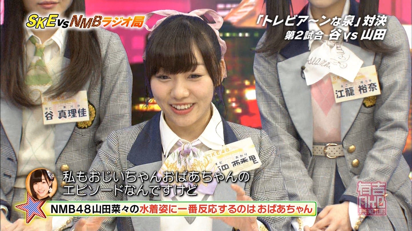 - 中央にNMBが陣取っているのを見て、やっぱり制作側が吉本に気を使っているのかなと思った。誰かも書いていたけど、さや姉が喋っていた時間(結構長かった)、SKEは存在していなかった。ありゃ無いわな。あやちゃんは「エビカルチョ」の辺りから、瞬間的な喋りが上手くなって来たと思うよ。