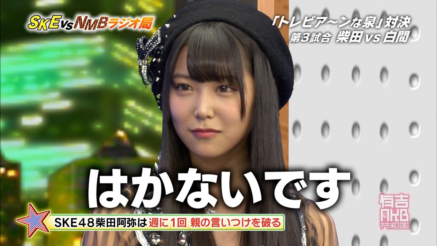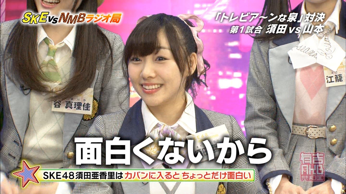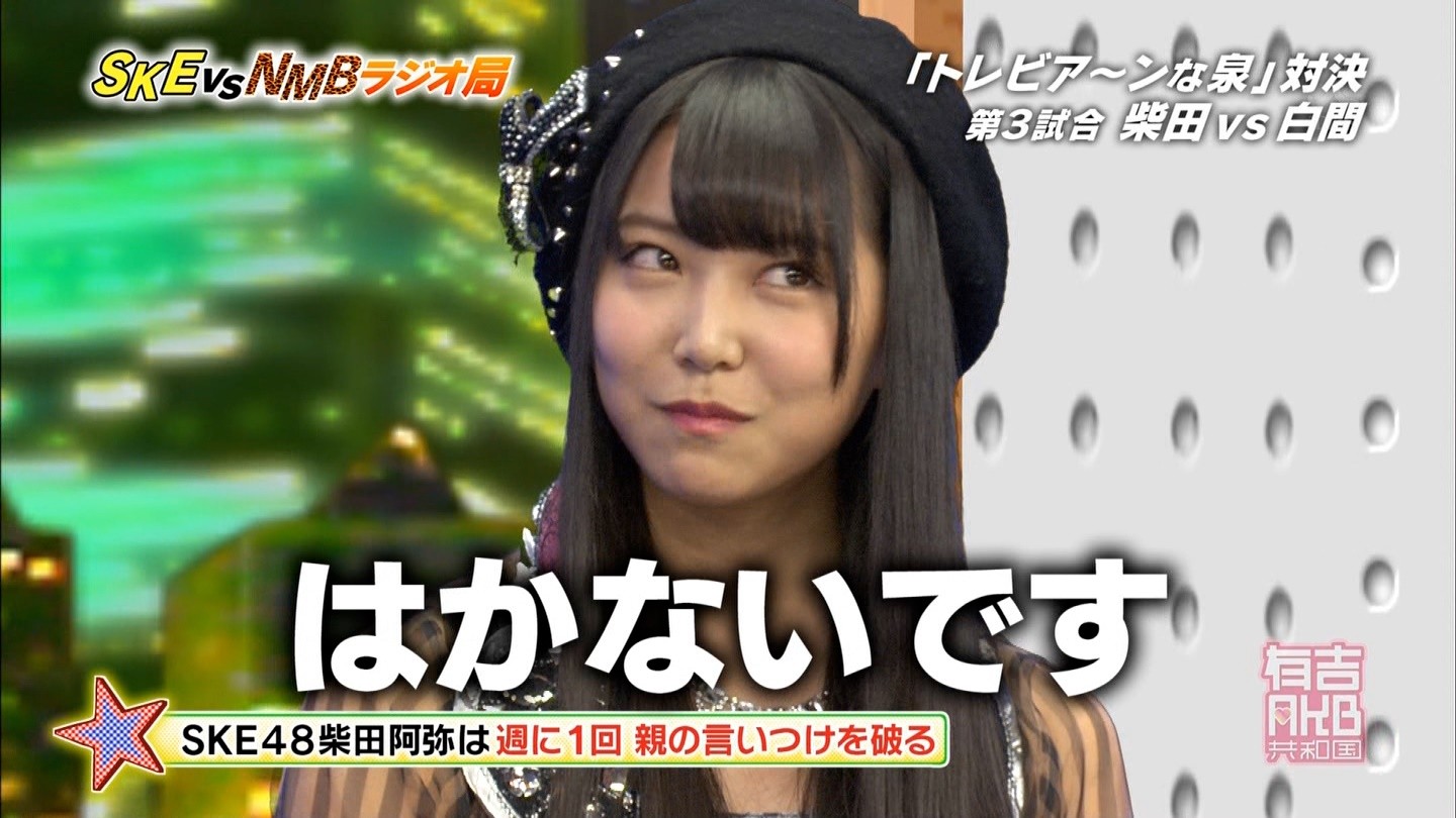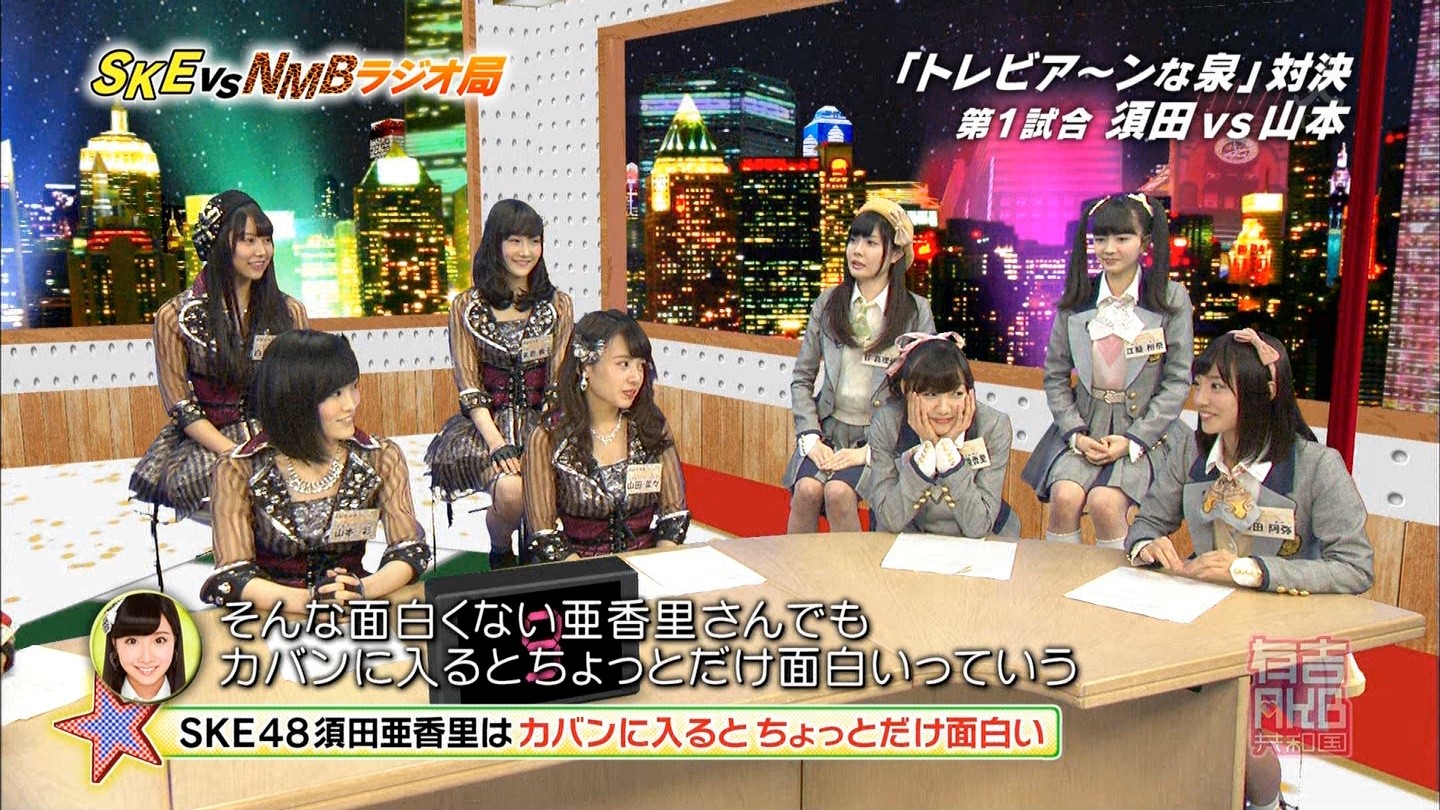 - 中央にNMBが陣取っているのを見て、やっぱり制作側が吉本に気を使っているのかなと思った。誰かも書いていたけど、さや姉が喋っていた時間(結構長かった)、SKEは存在していなかった。ありゃ無いわな。あやちゃんは「エビカルチョ」の辺りから、瞬間的な喋りが上手くなって来たと思うよ。