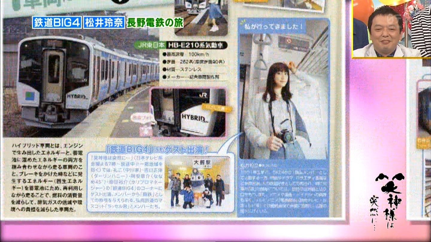 - 今日は東京や関東で走っていて長野の鉄道会社に譲渡された、実際に自分が乗った事のある車両が幾つか出て来たので、いつもより余計にテンションが上がったし、時刻表の話題もプラスされて、より面白かったな。再来週のSPと、その後のひょんさんの出演も楽しみ、嬉しい!!