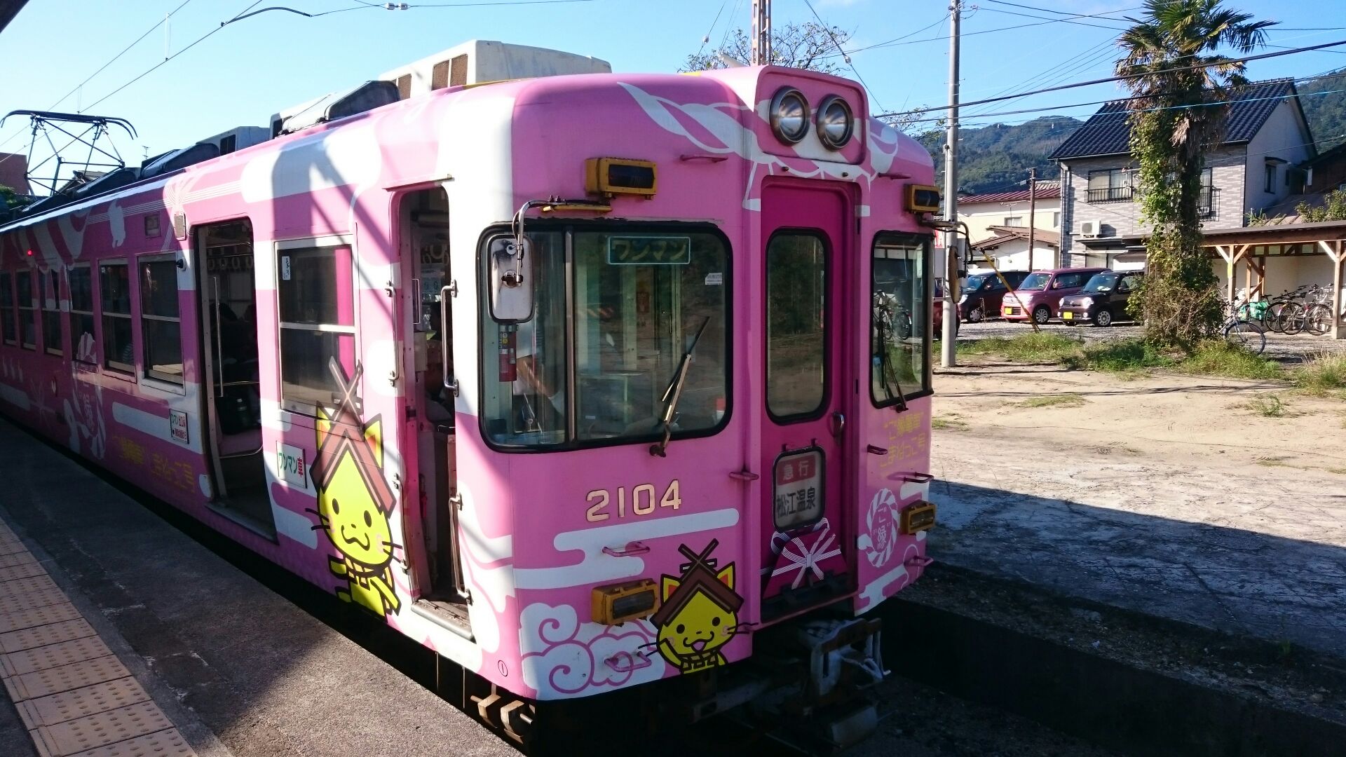 こちらは一畑電車で運行中の「ご縁電車しまねっこ号」