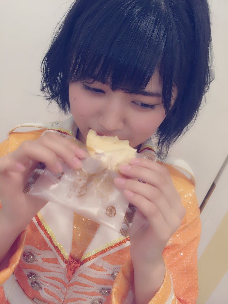 ゆななはアイドルらしく食べる前に笑顔でパシャっ!でも撮影後はひきつりながらも、おしりん先輩を立ててちゃんと食べていそうだな。