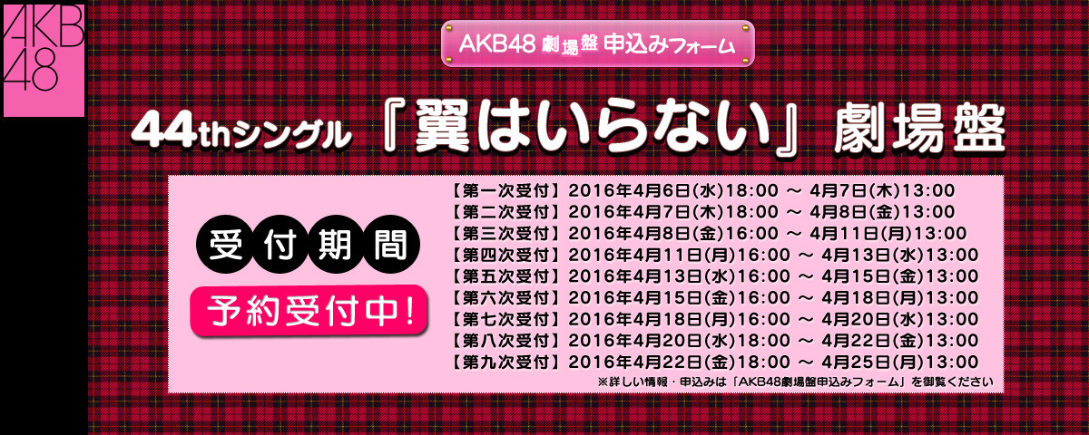 AKB48 44thシングル「翼はいらない」劇場盤4次完売状況