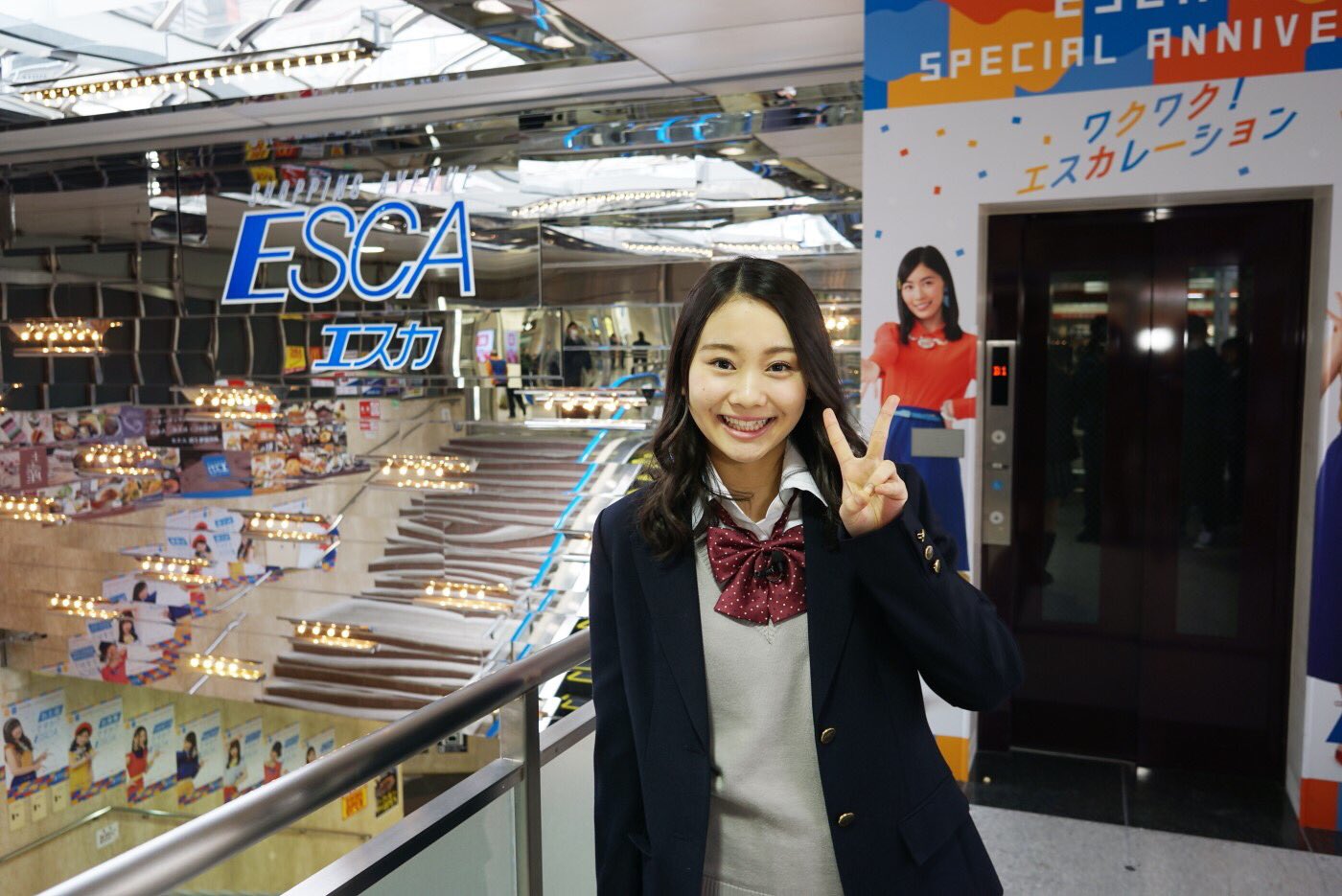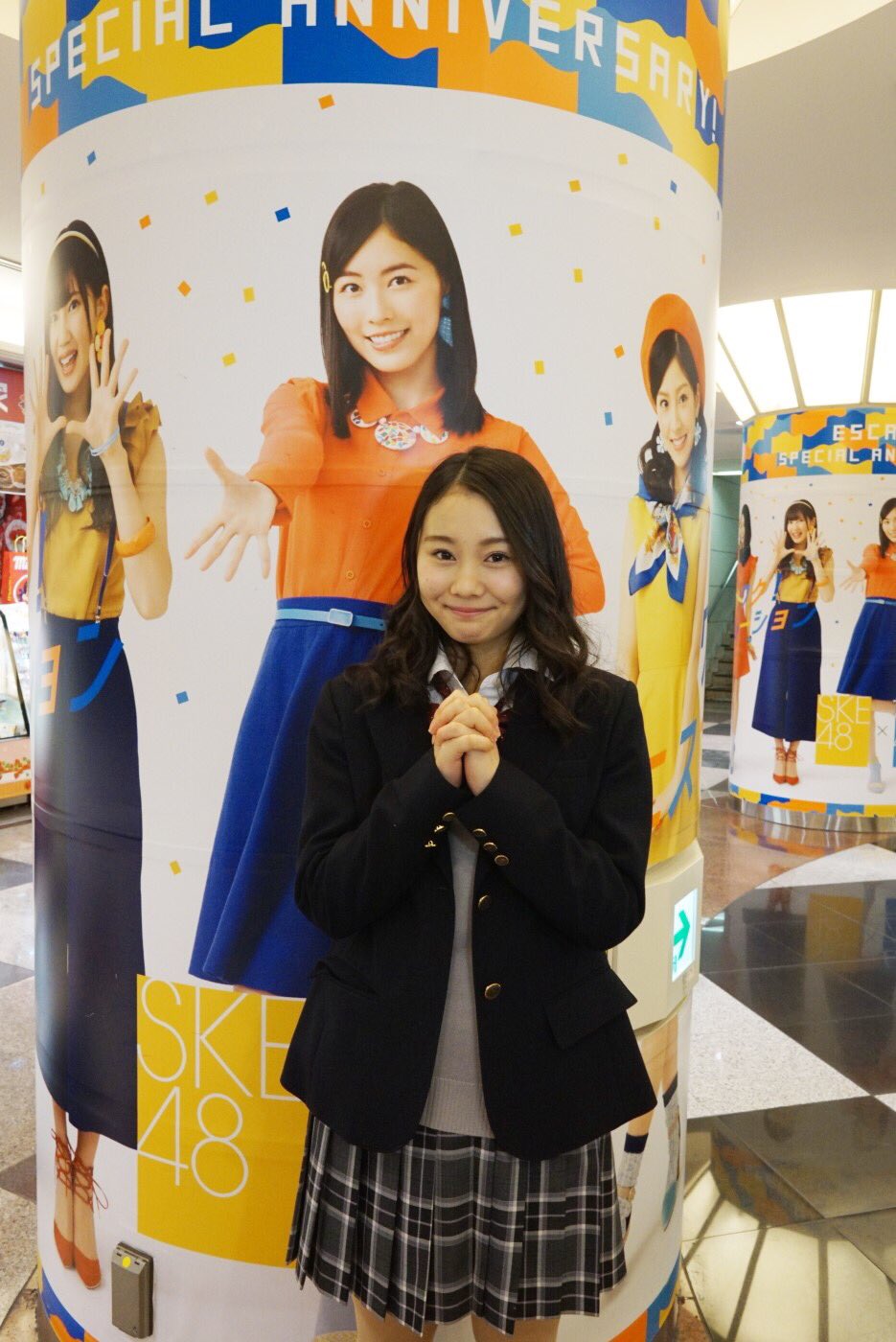SKE48熊崎晴香、後藤楽々がエスカで撮影!自身のパネルにサイン!