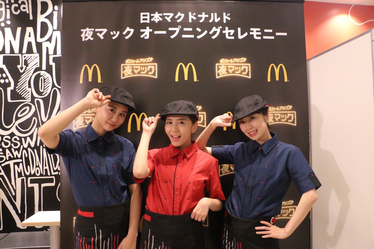 SKE48高柳明音、大場美奈、古畑奈和が「夜マック」特別先行販売会に参加!テレビ中継にも出演!