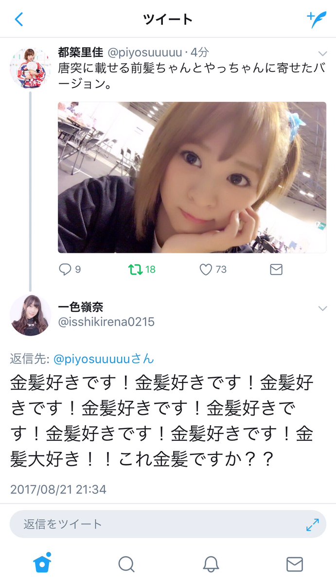 — 一色嶺奈 (@isshikirena0215) 2017年8月21日