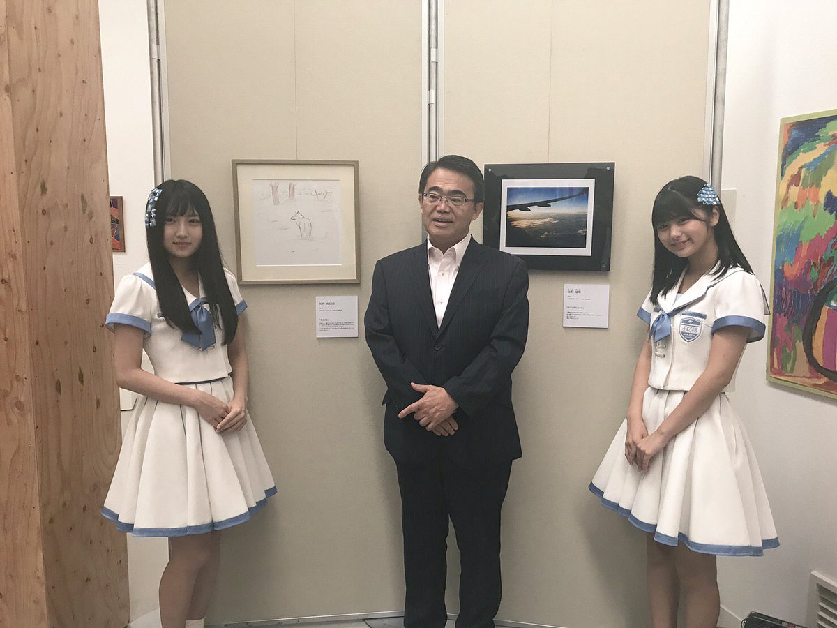 本日、大村秀章愛知県知事とともに、あいちアール・ブリュット展(https://t.co/zbsPizTLwK)に、 #SKE48 から #北野瑠華 #矢作有紀奈 が参加させて頂きました。