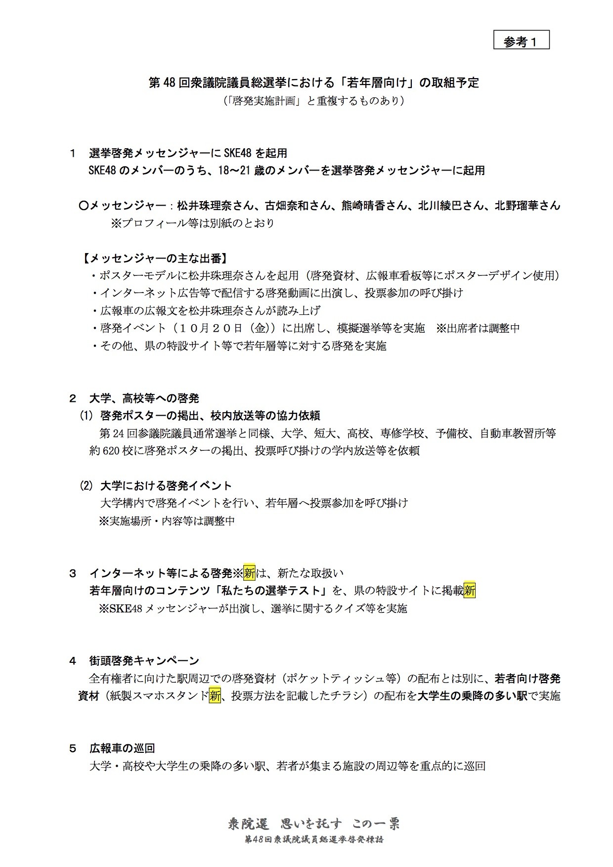 第48回衆議院議員総選挙啓発実施計画について - 愛知県