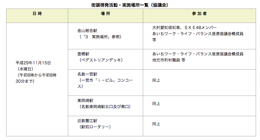 11月15(水曜日)に「愛知県内一斉ノー残業デー」の街頭啓発活動を実施します!~SKE48とのLOVEあいち・スペシャルコラボ~ - 愛知県