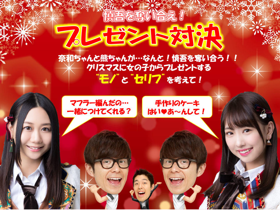【サンデー】『慎吾を奪い合え!プレゼント対決』古畑さんと熊崎さんがなんと、慎吾を奪い合う!!クリスマスに女の子からプレゼントする"モノ"と"セリフ"を大募集!https://t.co/RSqkWAUl7a #SKE48 #古畑奈和 #熊崎晴香 #nhkらじらー
