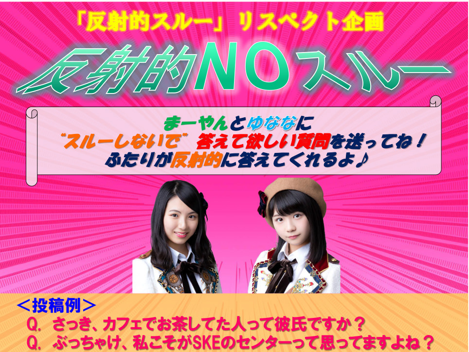 【サンデー】『反射的NOスルー』小畑さんと菅原さんに"スルーしないで"答えて欲しい質問を大募集!2人が反射的に答えちゃいます!https://t.co/zWUYIOYUz6 #SKE48 #小畑優奈 #菅原茉椰 #nhkらじらー