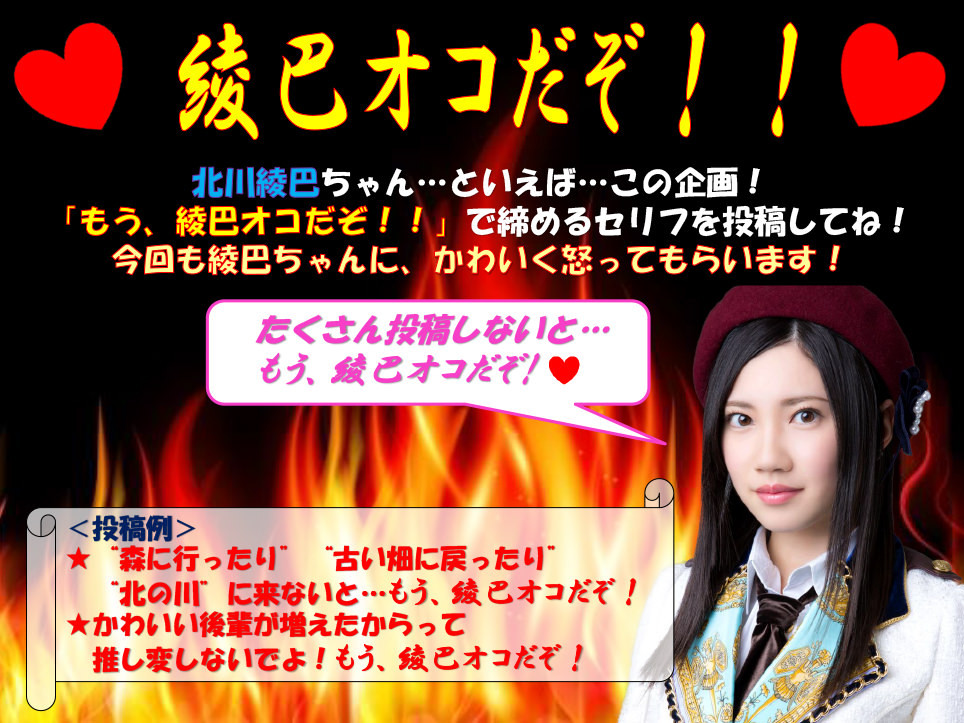 【サンデー】『綾巴オコだぞ!!』北川さんといえば…この企画!「もう、綾巴オコだぞ!!」で締めるセリフを送ってね!今回も北川さんに可愛く怒ってもらいます!https://t.co/MhcngwK7D2 #SKE48 #北川綾巴 #nhkらじらー