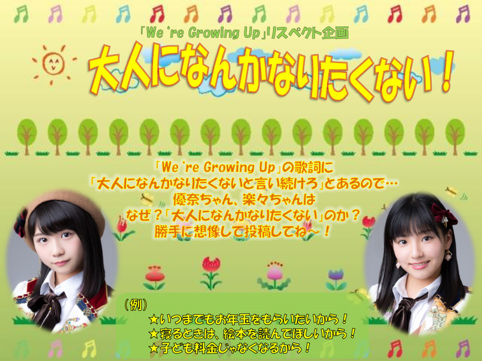 【サンデー】『大人になんかなりたくない!』「We`re Growming Up」に"大人になんかなりたくないと言い続けろ"…2人は何で大人になりたくないの?https://t.co/RSqkWAUl7a #SKE48 #小畑優奈 #後藤楽々 #nhkらじらー