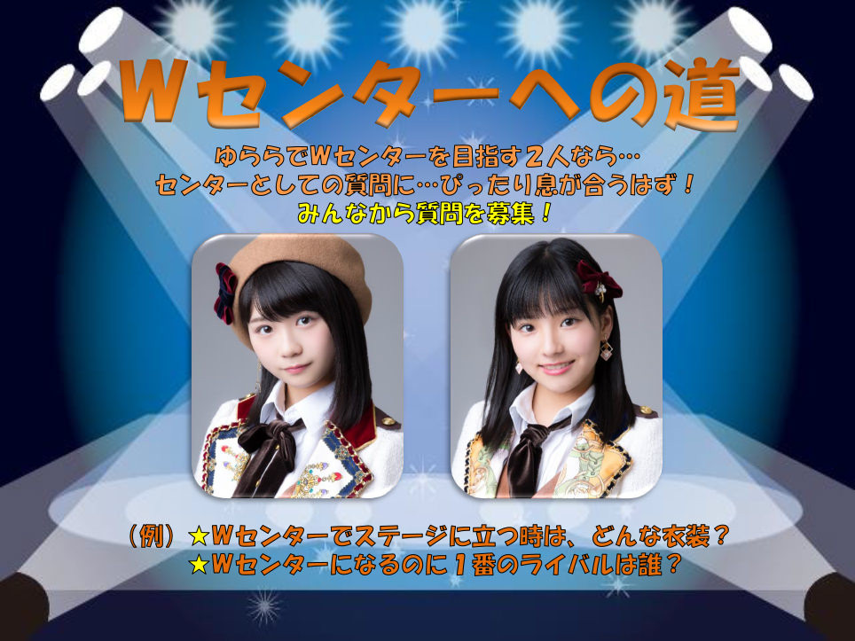 【サンデー】『Wセンターへの道』ゆららでWセンターを目指す2人なら、センターとしての質問にピッタリ息が合うはず!みんなからの質問待ってます!https://t.co/rC4PaUCjom #SKE48 #小畑優奈 #後藤楽々 #nhkらじらー
