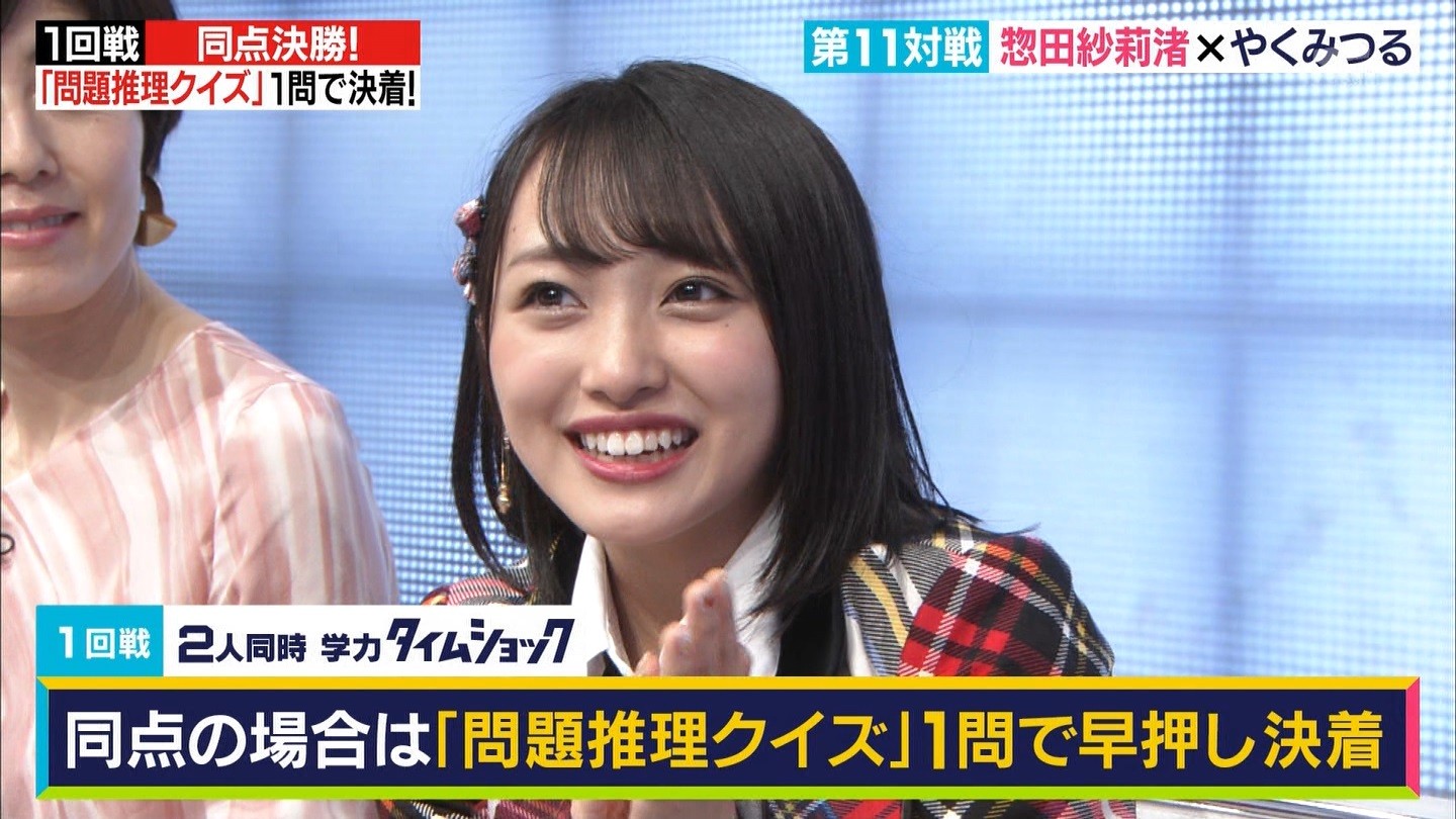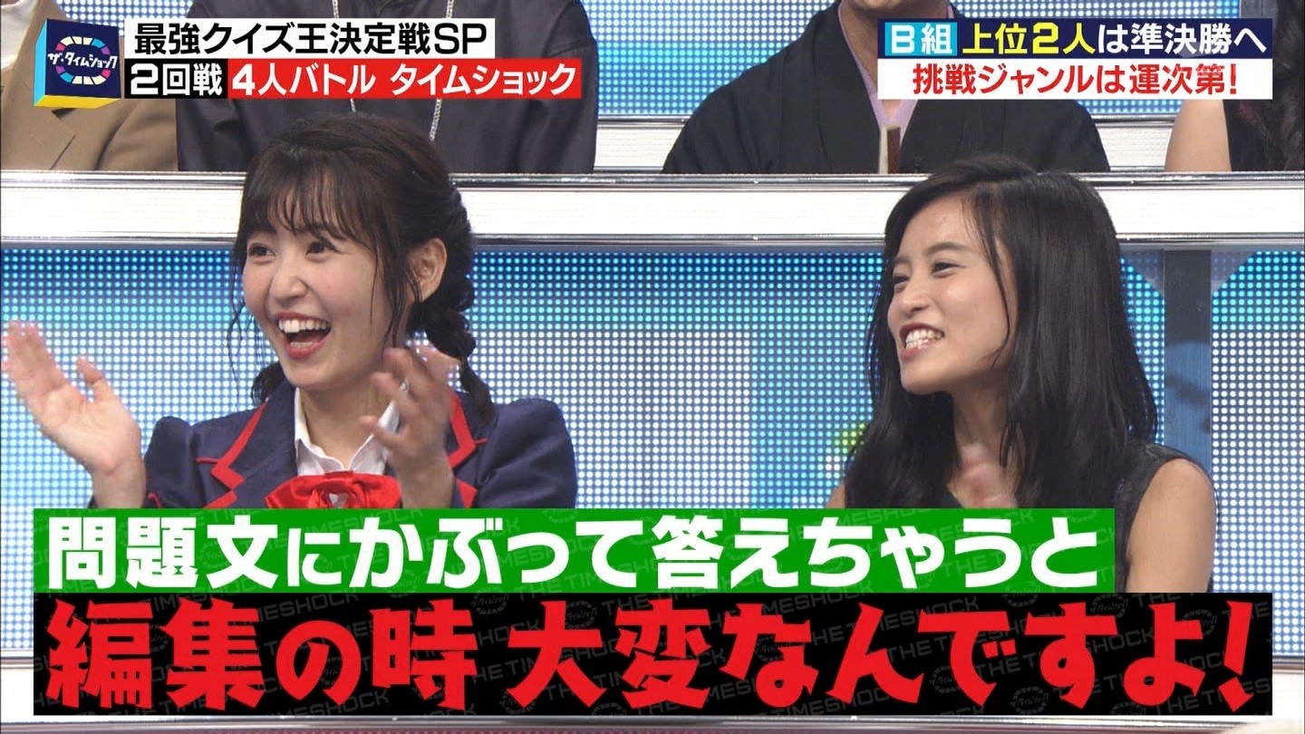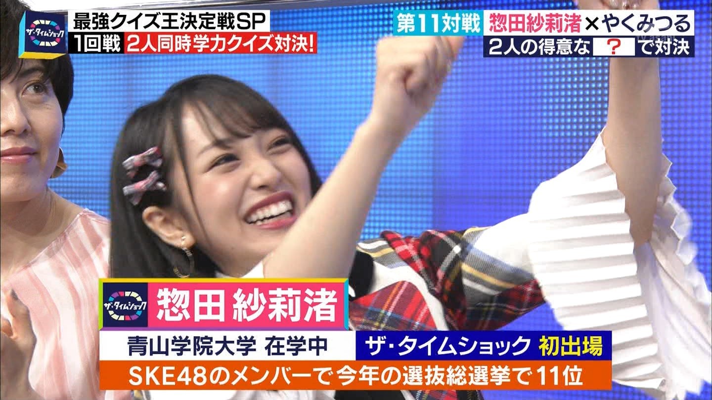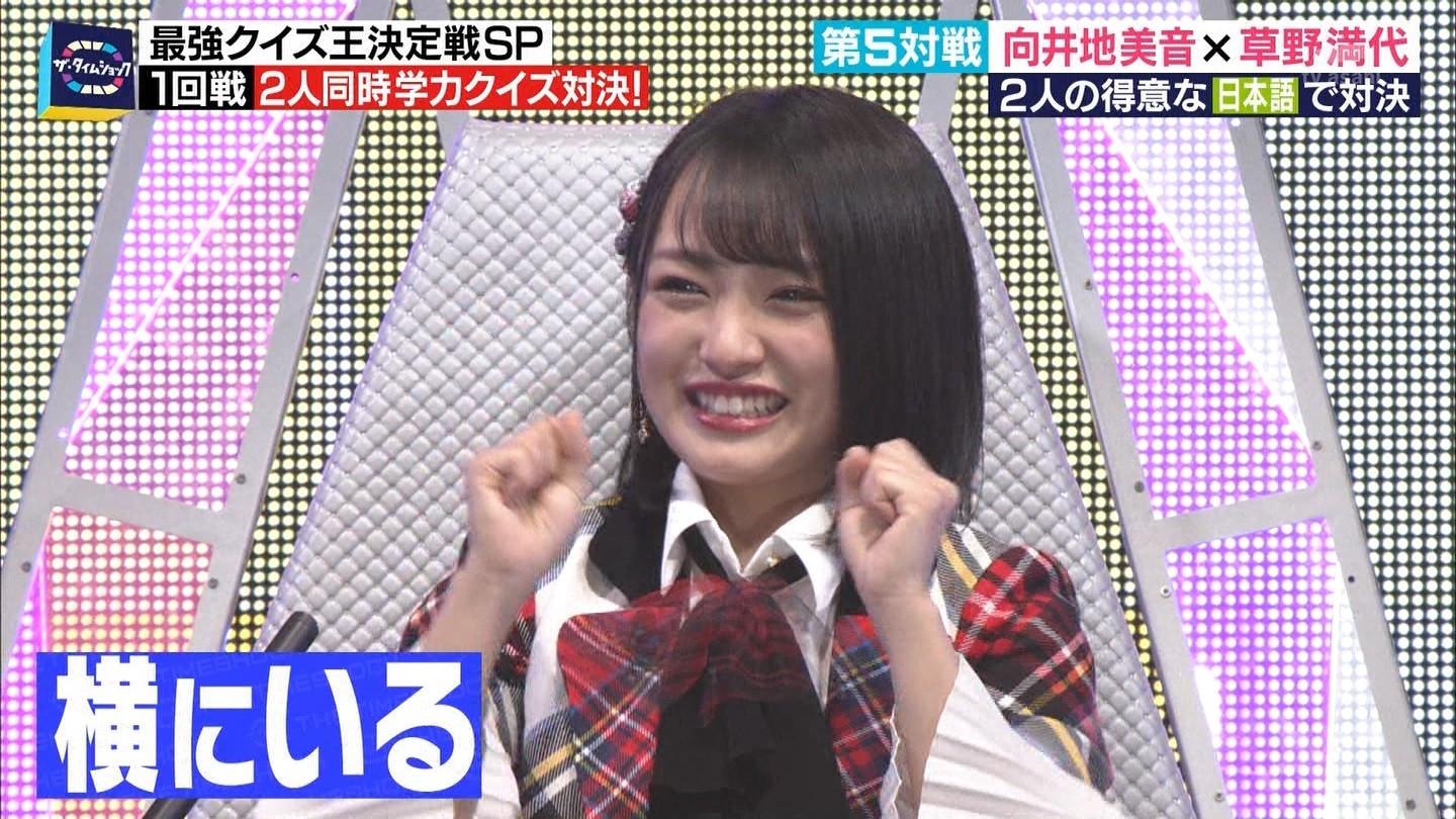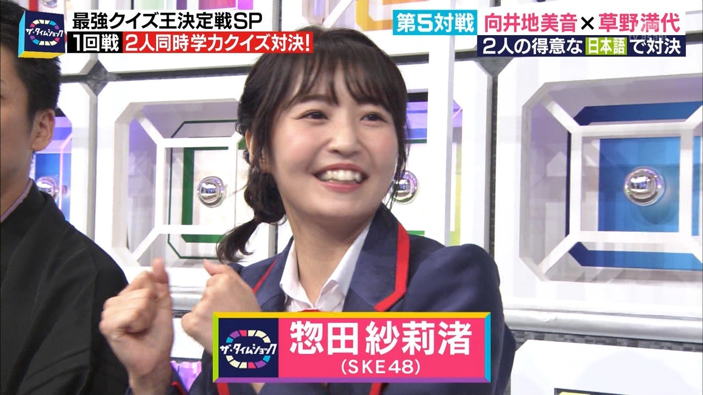 - ※14 勝っただけでなく、勝ち方が良かった。最後の問題で追いついて、推理問題でやくさんとほぼ同時に答えての、タッチの差での勝利。オーディション合格の時から変わらない、ギリギリセーフのチキンレースが持ち味。この子は持ってるわ。これからもクイズレジェンド達をバッタバッタとやっつけてって欲しい。ただ、一つ注文をつけるとすれば、「なんとしても勝たなきゃ!」の気持ちは分かるけど、そこは抑えて、その場の雰囲気も楽しめるくらいに、遊び心が持てるようになれれば満点です♪