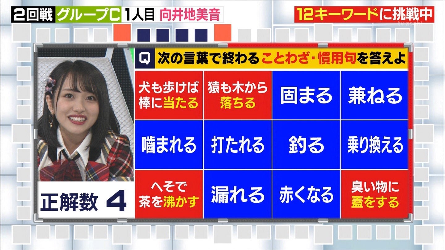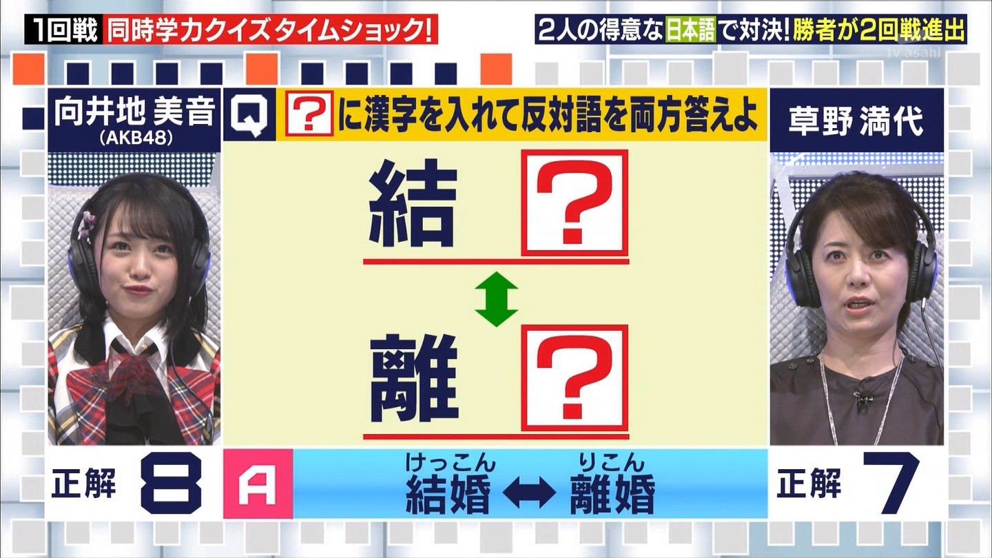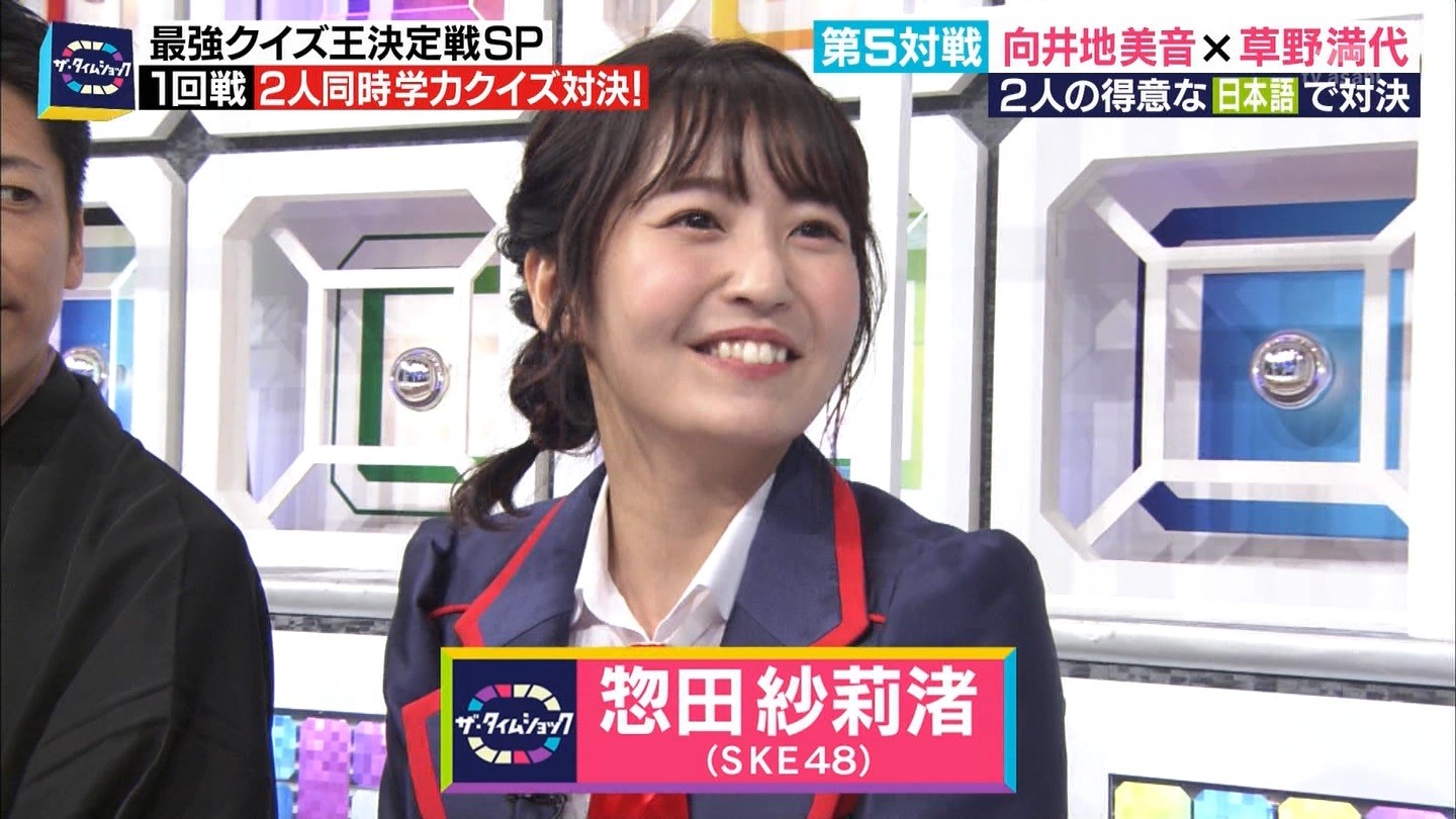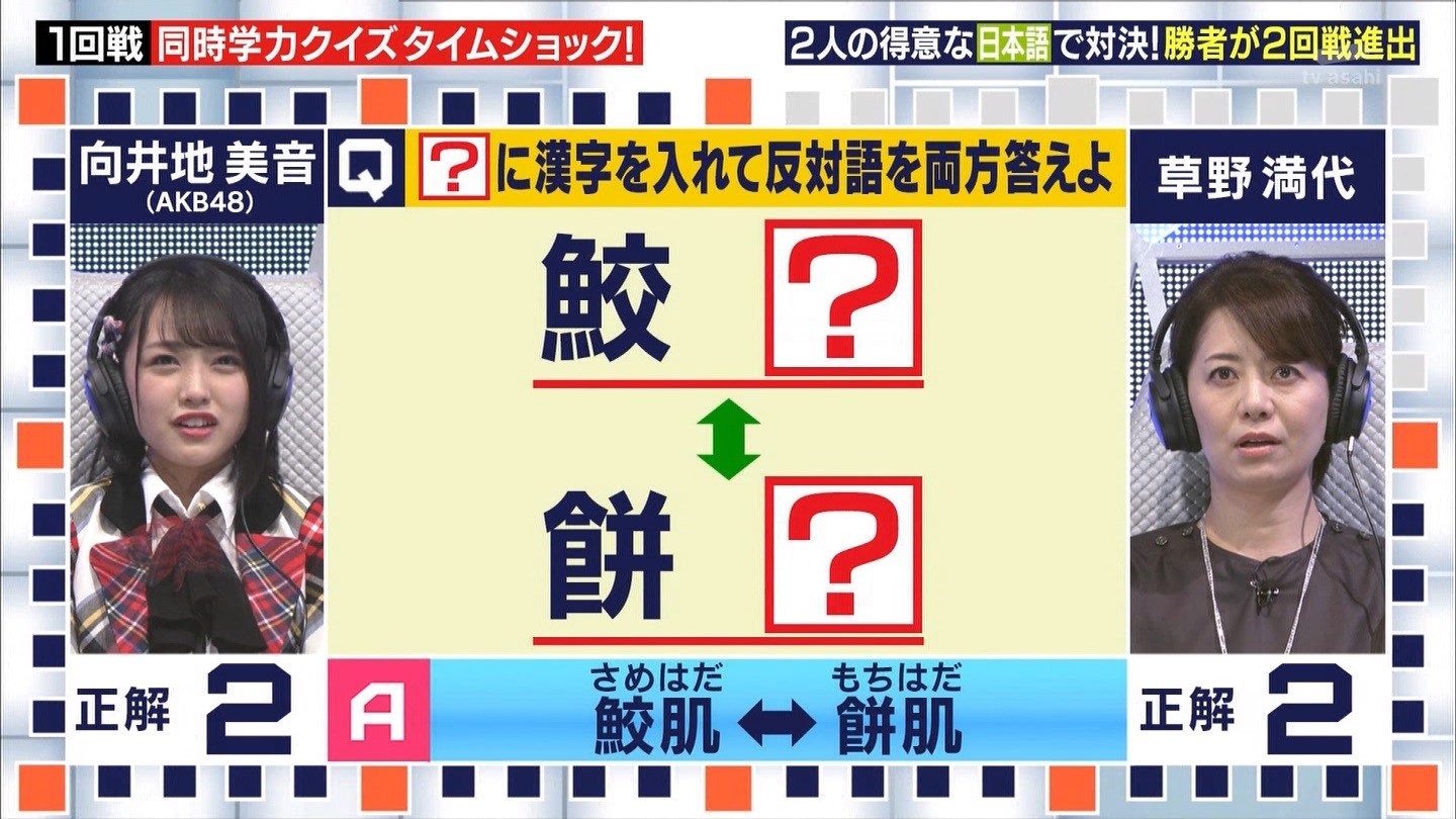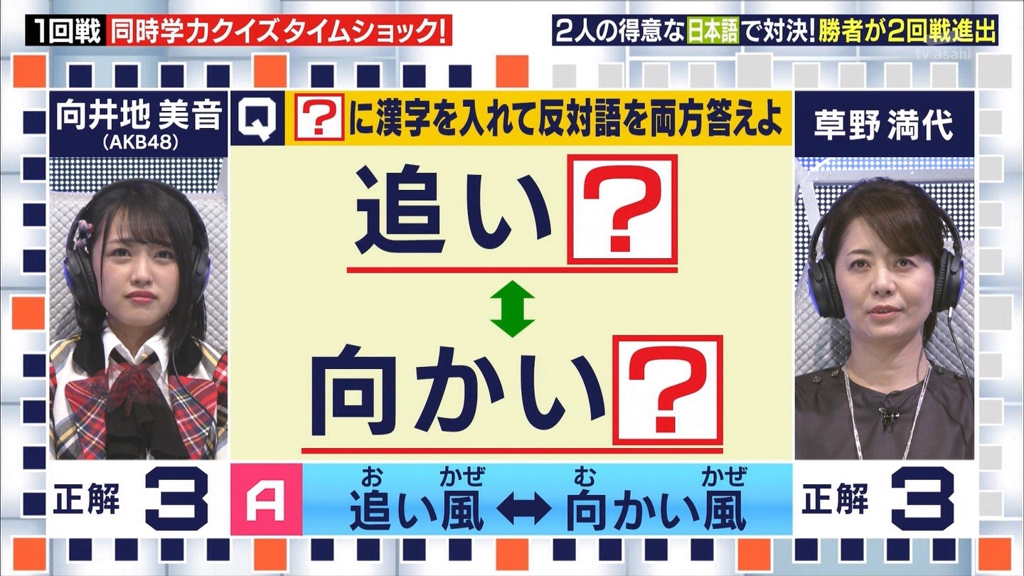 - ※14 勝っただけでなく、勝ち方が良かった。最後の問題で追いついて、推理問題でやくさんとほぼ同時に答えての、タッチの差での勝利。オーディション合格の時から変わらない、ギリギリセーフのチキンレースが持ち味。この子は持ってるわ。これからもクイズレジェンド達をバッタバッタとやっつけてって欲しい。ただ、一つ注文をつけるとすれば、「なんとしても勝たなきゃ!」の気持ちは分かるけど、そこは抑えて、その場の雰囲気も楽しめるくらいに、遊び心が持てるようになれれば満点です♪