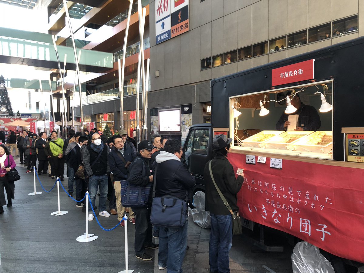 熊本イベント、るーちゃんのトークショー後は、 #いきなり団子 屋台に長蛇の列が!!
