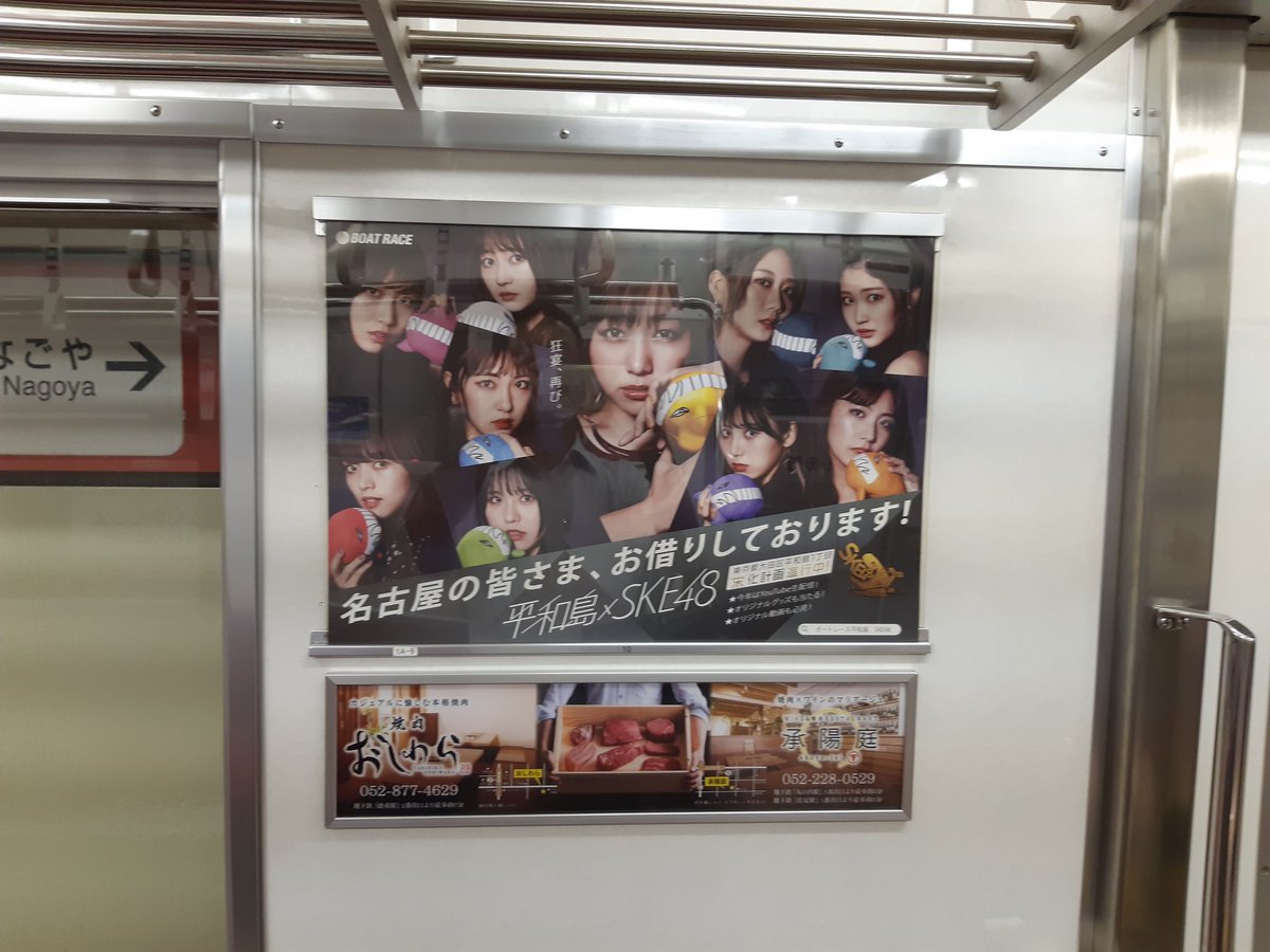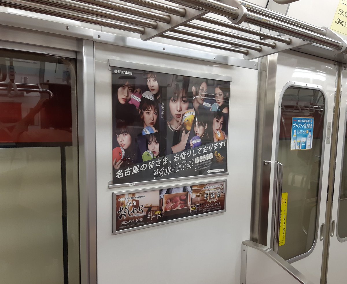 今日から名古屋市営地下鉄の電車内にSKE48×平和島コラボの広告を展開しています‼️