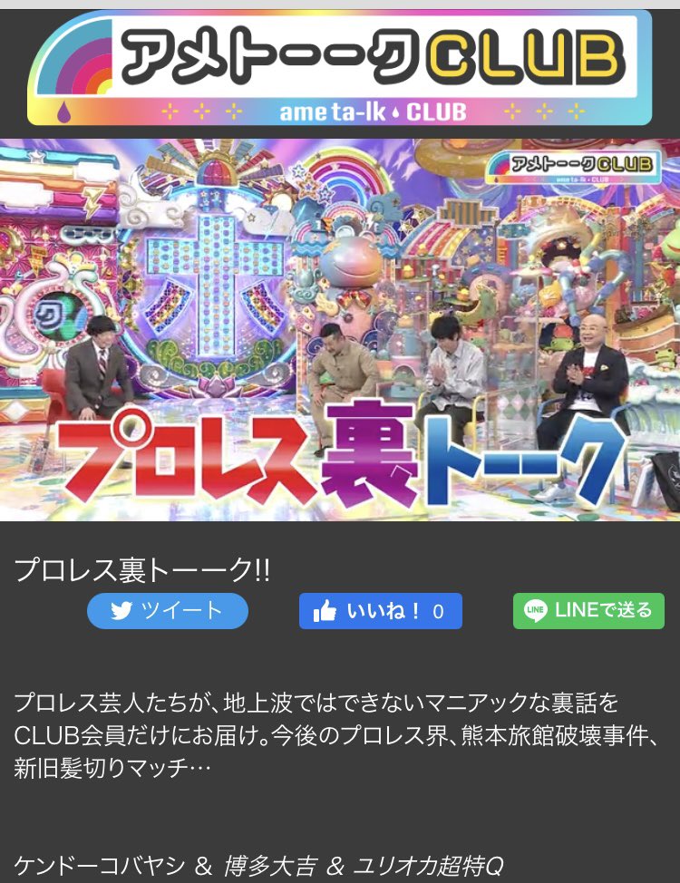 #アメトーークCLUB にて本日より配信! #プロレス裏トーーク #荒井優希 さんのTシャツを着て、なんと9年ぶりに #アメトーーク のスタジオに行って参りました。地上波では出来ないトークが満載。プロレスファンのみならず是非ご覧ください。#蛍原徹 #博多大吉 #ケンドーコバヤシ pic.twitter.com/3yxaTBVJpm