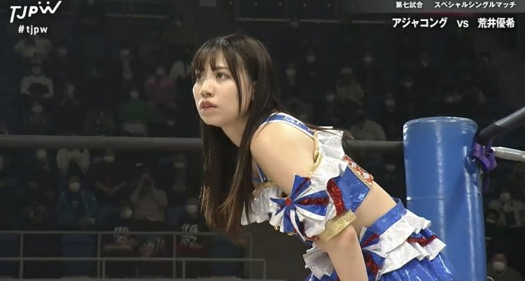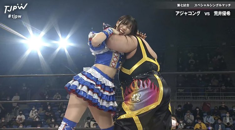 荒井優希対アジャゴング。まさにプロレスラー同士の真っ向勝負。凄い試合でした。にしてもこのキャリアでこの表現力は尋常じゃない。我々 #SKE48 ファンはもっともっと荒井優希さんの事を誇りに思わないとね。