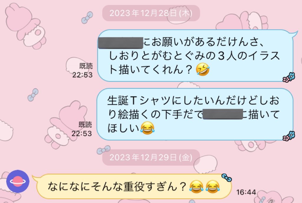 昔からお姉ちゃんの描く絵がかわいくてお気に入りだったので頼んでみました😂