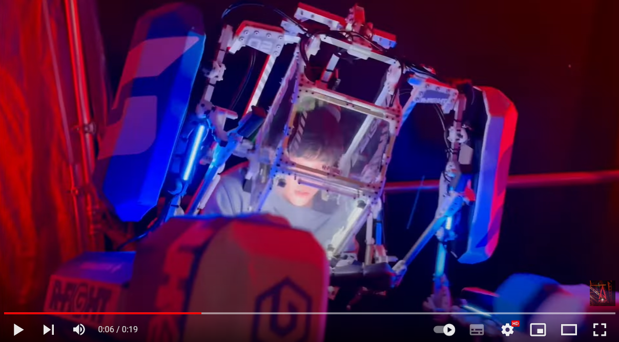 柴田さんが、ロボットに搭乗し、ロボットファイトする動画