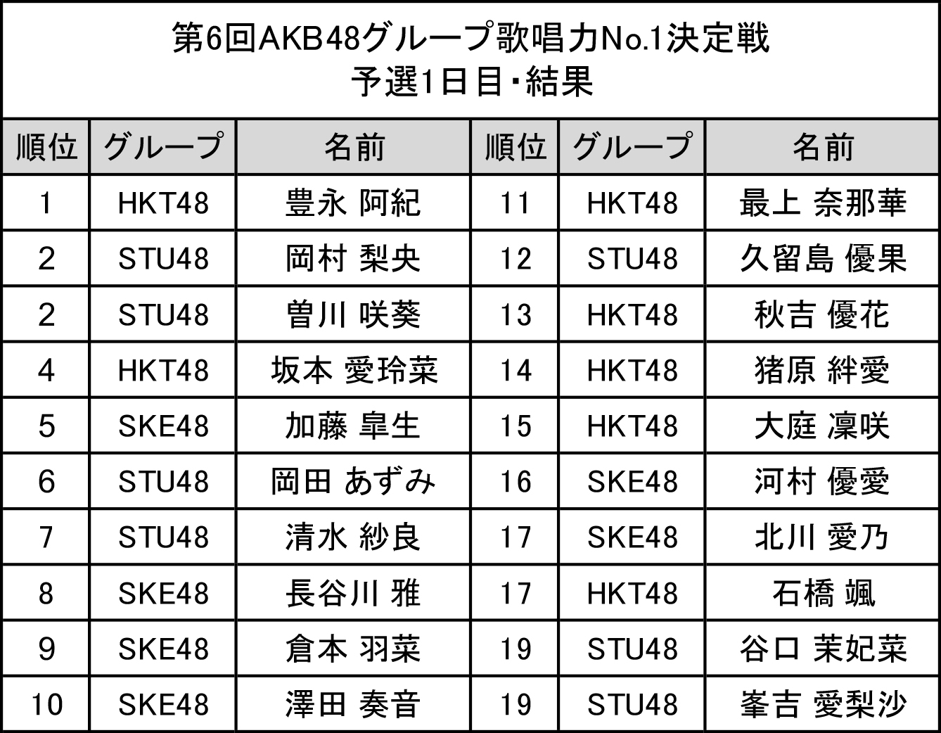 8位の長谷川雅はまさに当落線上。SKE48の進出が1人だったら審査員推薦になるかもね。