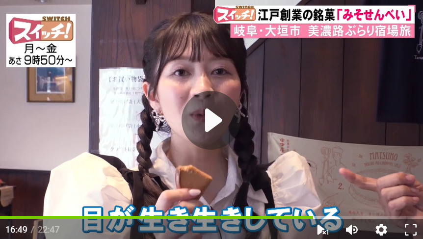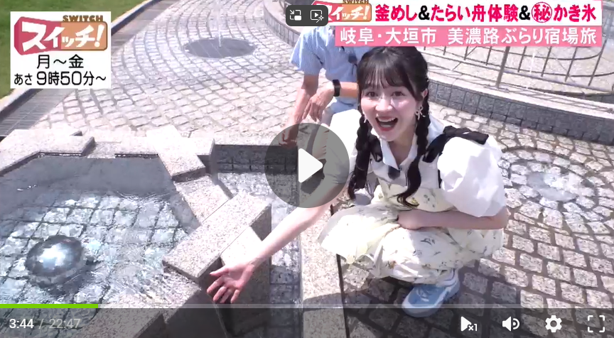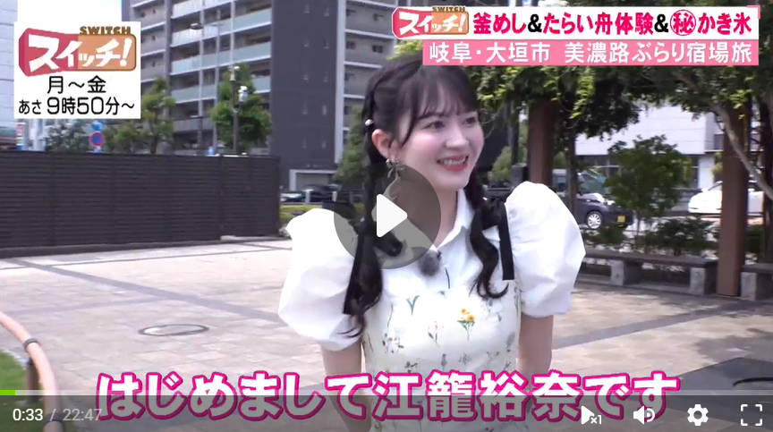 江籠裕奈さんが、2024年7月26日放送の東海テレビ「スイッチ! 高井一の ちょっと宿場を歩いてみませんか ~美濃路・夏の大垣宿~」 に出演されました。※Locipoによる見逃し配信あり