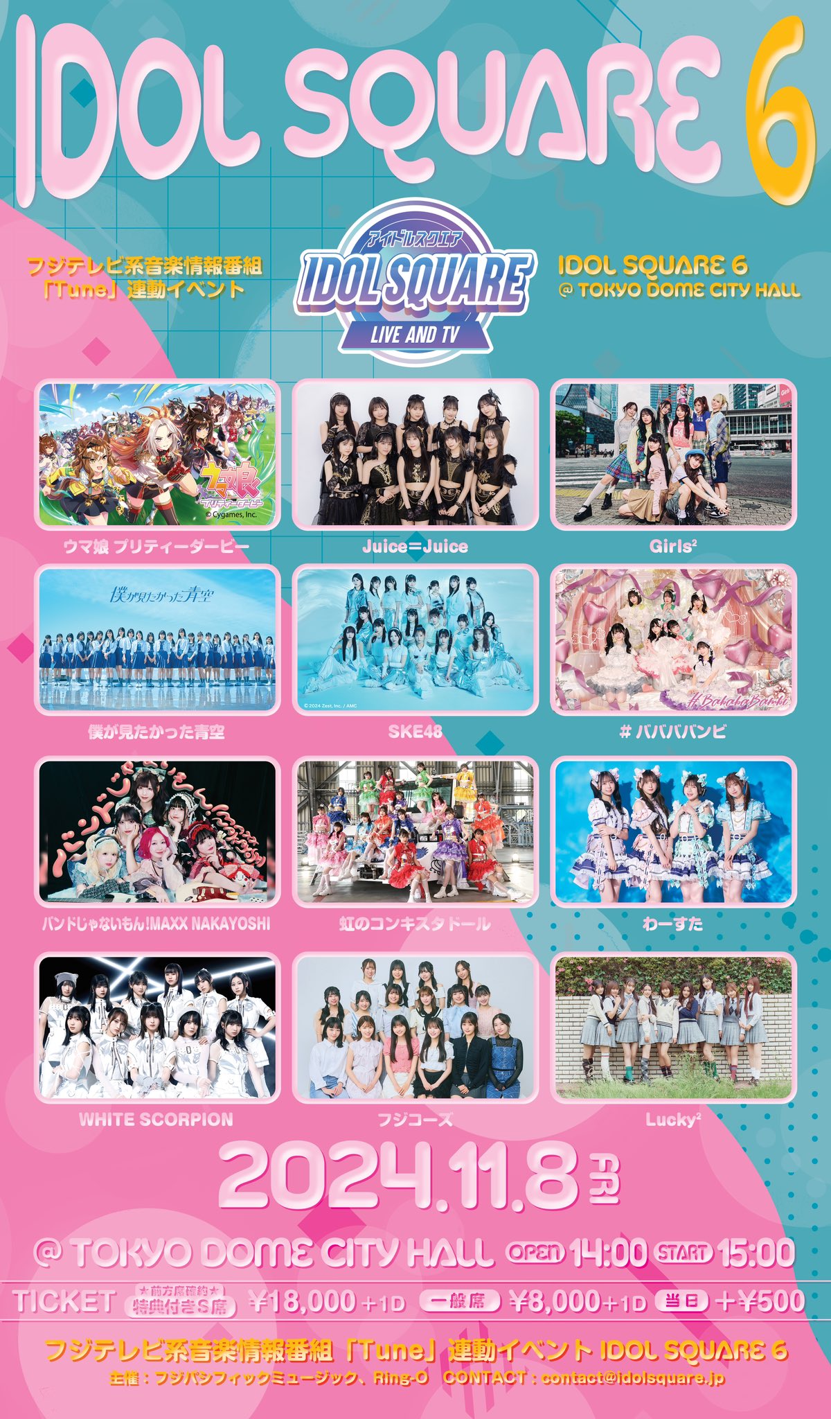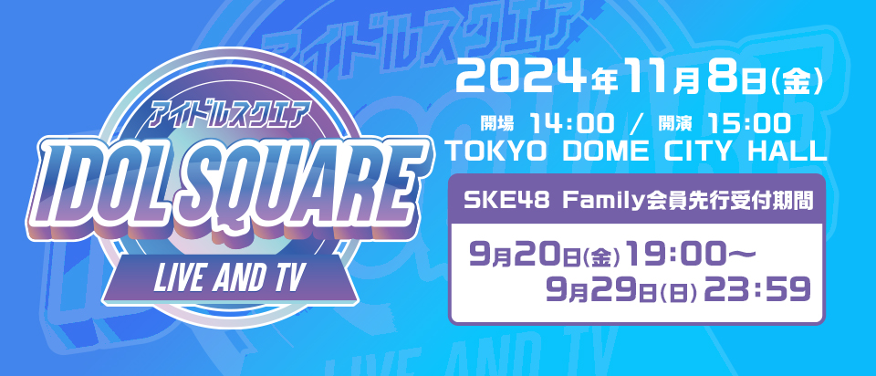 11月8日(金)開催のフジテレビ系音楽情報番組「Tune」連動イベント “IDOL SQUARE 6”にSKE48の出演が決定いたしました!