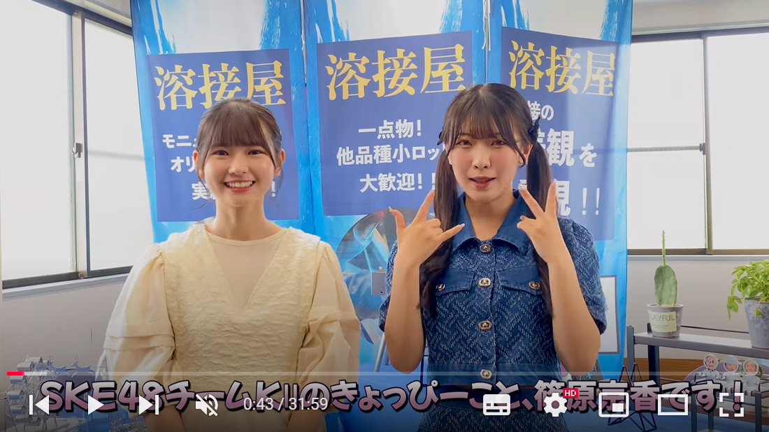 原優寧さん、篠原京香さんが出演された、千成工業株式会社YouTube「リアルアイドルが町工場にやってきた!? Part①」をまとめてみました。
