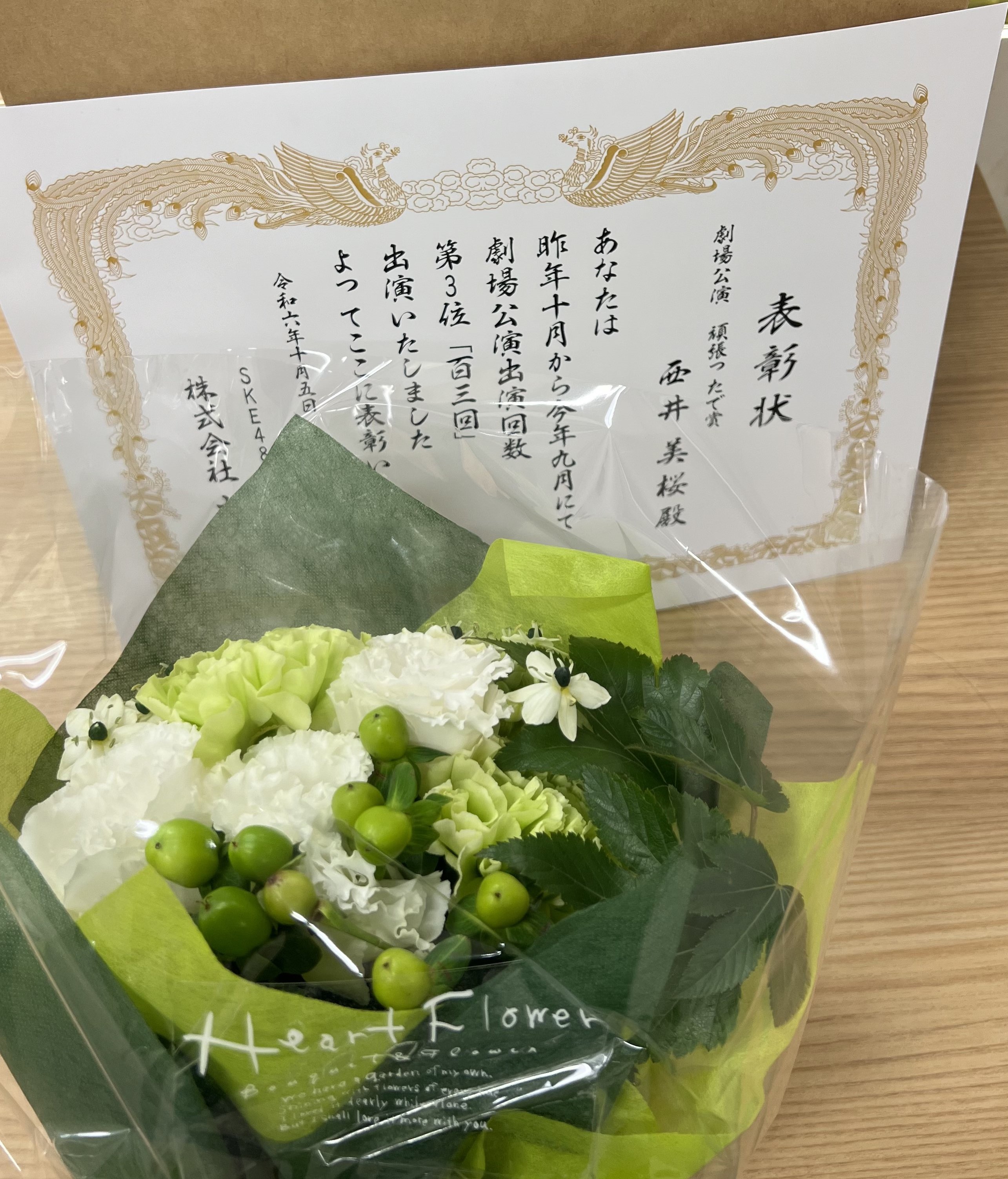 2024年10月5日に行われました、 SKE48劇場16周年特別公演で、昨年10月から今年9月の劇場公演出演回数TOP3が発表・表彰されました。
