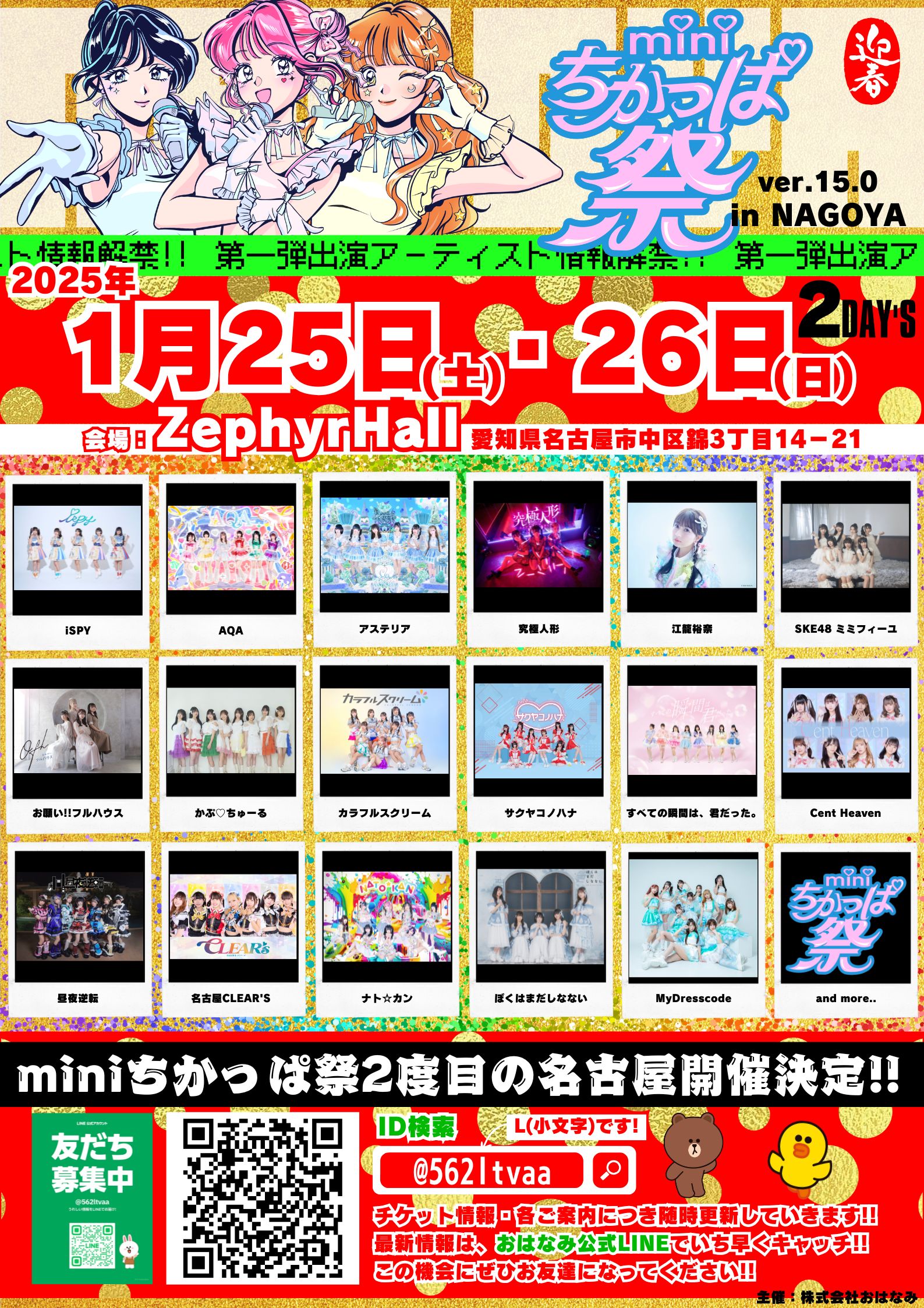 2025年1月25日~1月26日(日)開催の「miniちかっぱ祭ver.15.0inNAGOYA」に、SKE48 ミミフィーユの出演が決定しました。