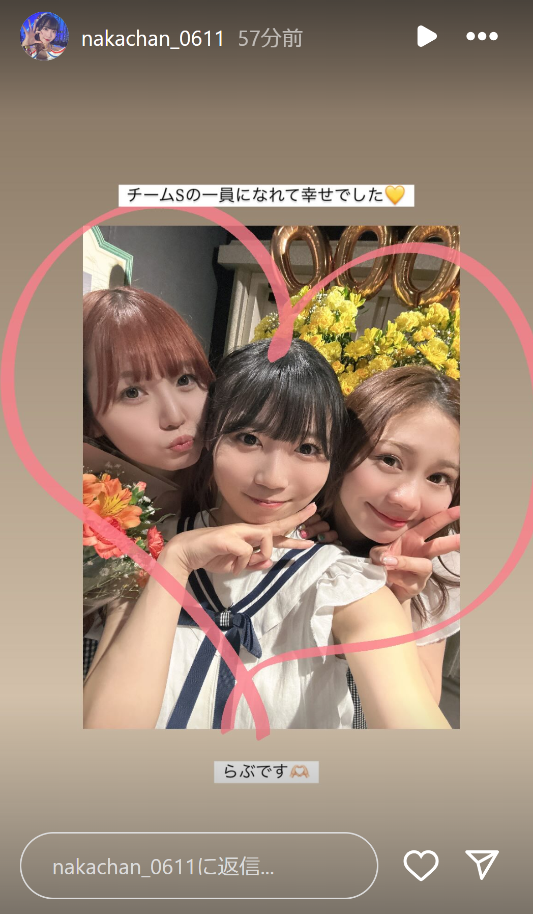 リーダーにしてくれてありがとう。松本チームSにしてくれてありがとう。約5年間本当にありがとうございました!チームS最高!チームS最強!チームS大好き。松本チームSは私の自慢!またね💛 pic.twitter.com/0BFsK3Qu70