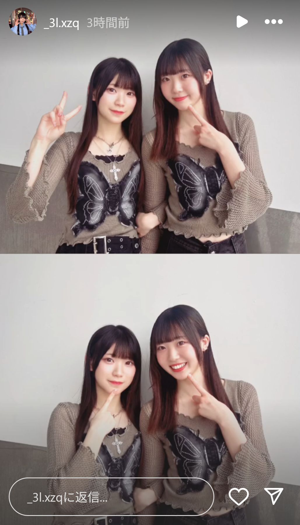 今日は衣装と同期の #松川みゆ ちゃんとおそろいの #y2k コーデしてみたよ🦋🖤⋆͛*͛