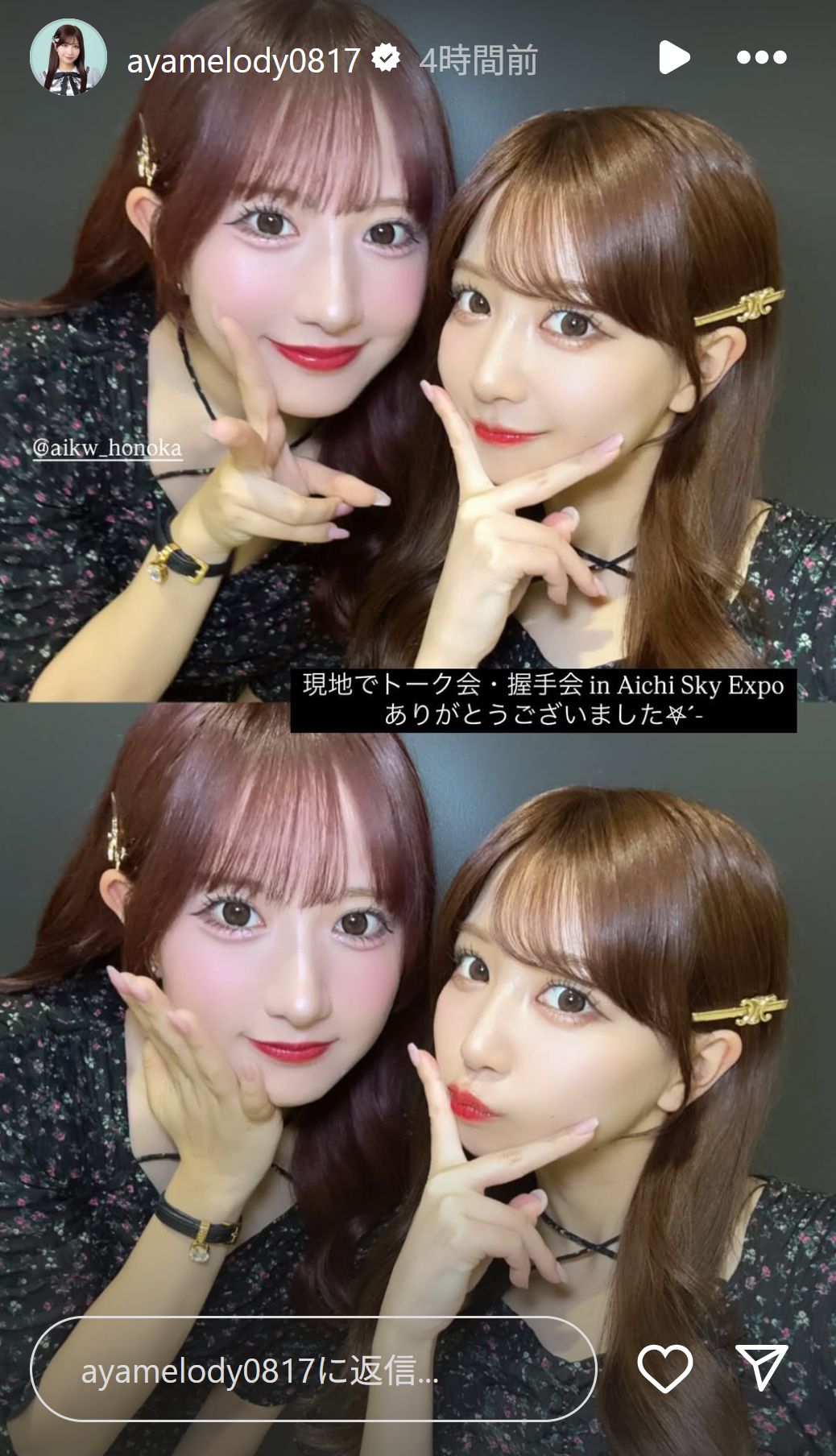 2025年4月20日にAICHI SKY EXPOで行われました現地でトーク会・握手会、新チームEのSNSをまとめてみました。漏れや見落としはご容赦くださいませ。