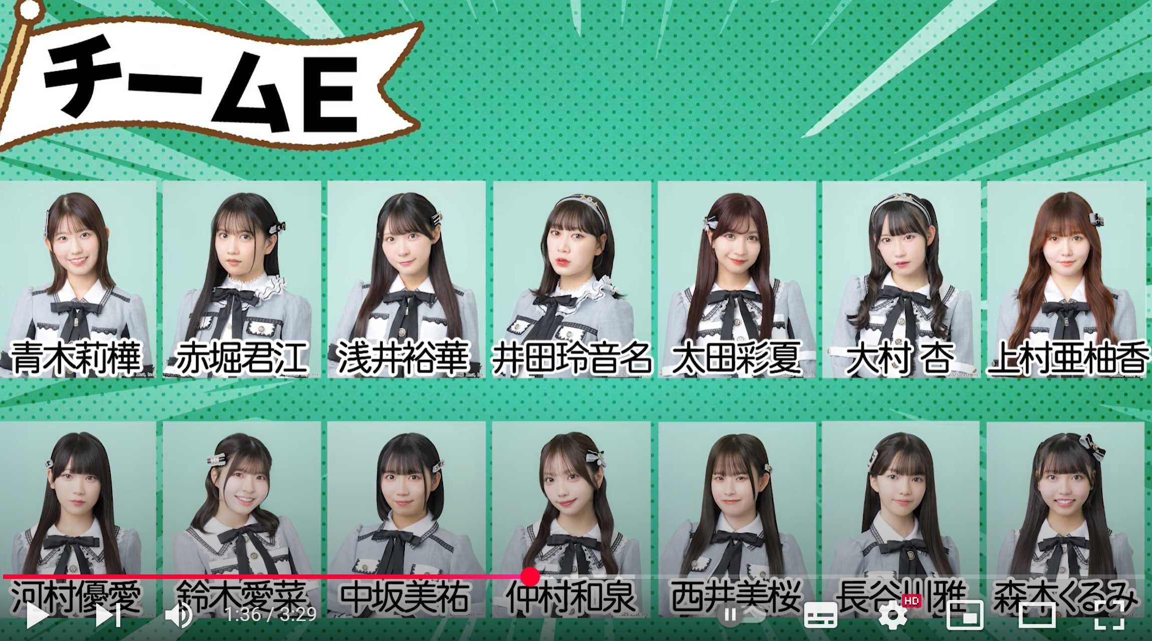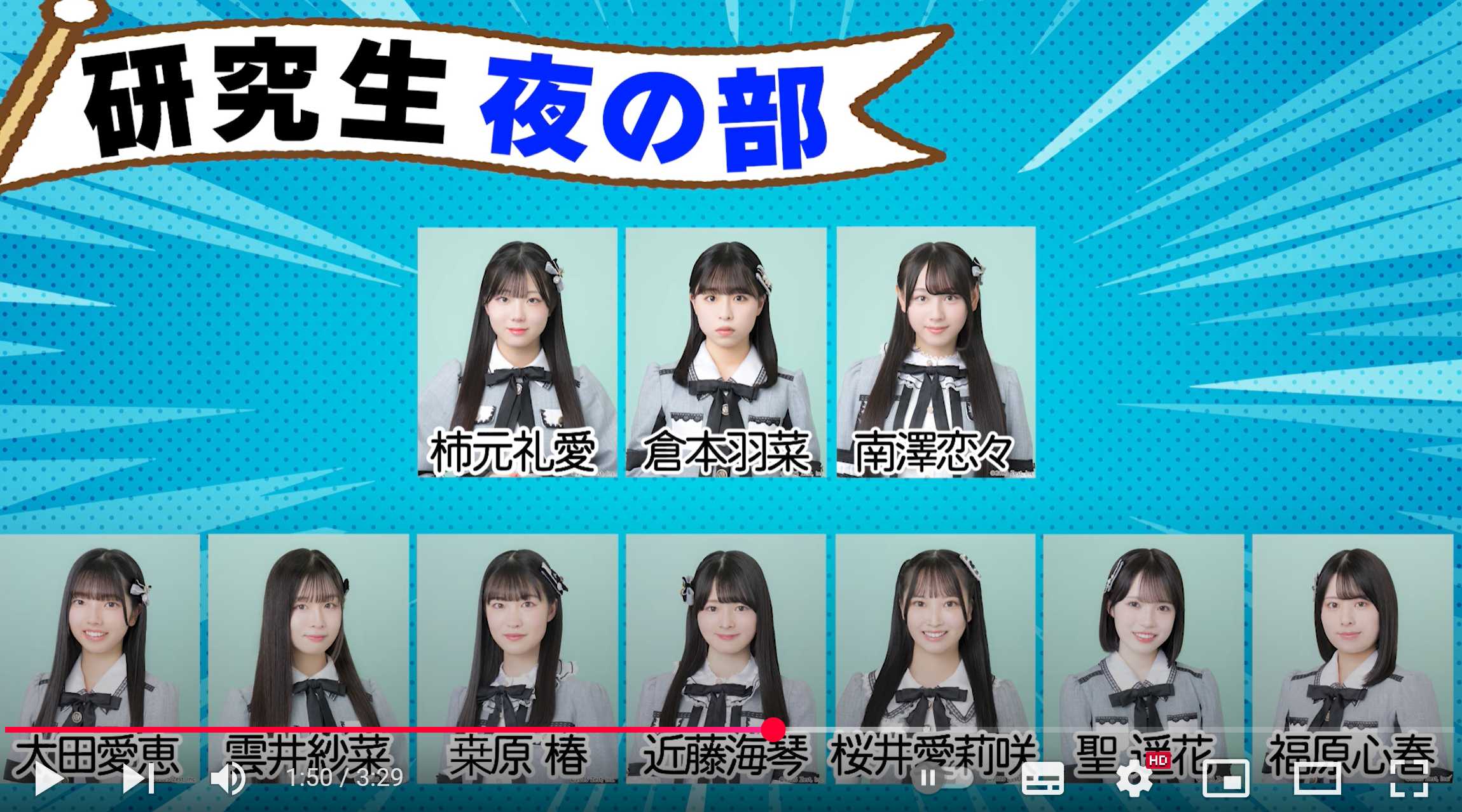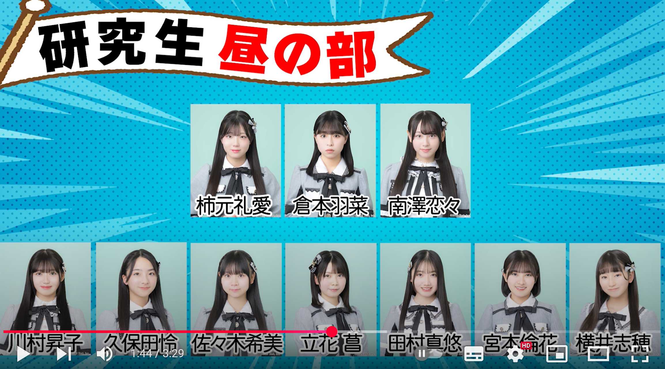 出演者: 相川暖花 石黒友月 伊藤虹々美 入内嶋涼 熊崎晴香 倉島杏実 坂本真凛 杉本りいな 鈴木恋奈 中野愛理 野村実代 原優寧