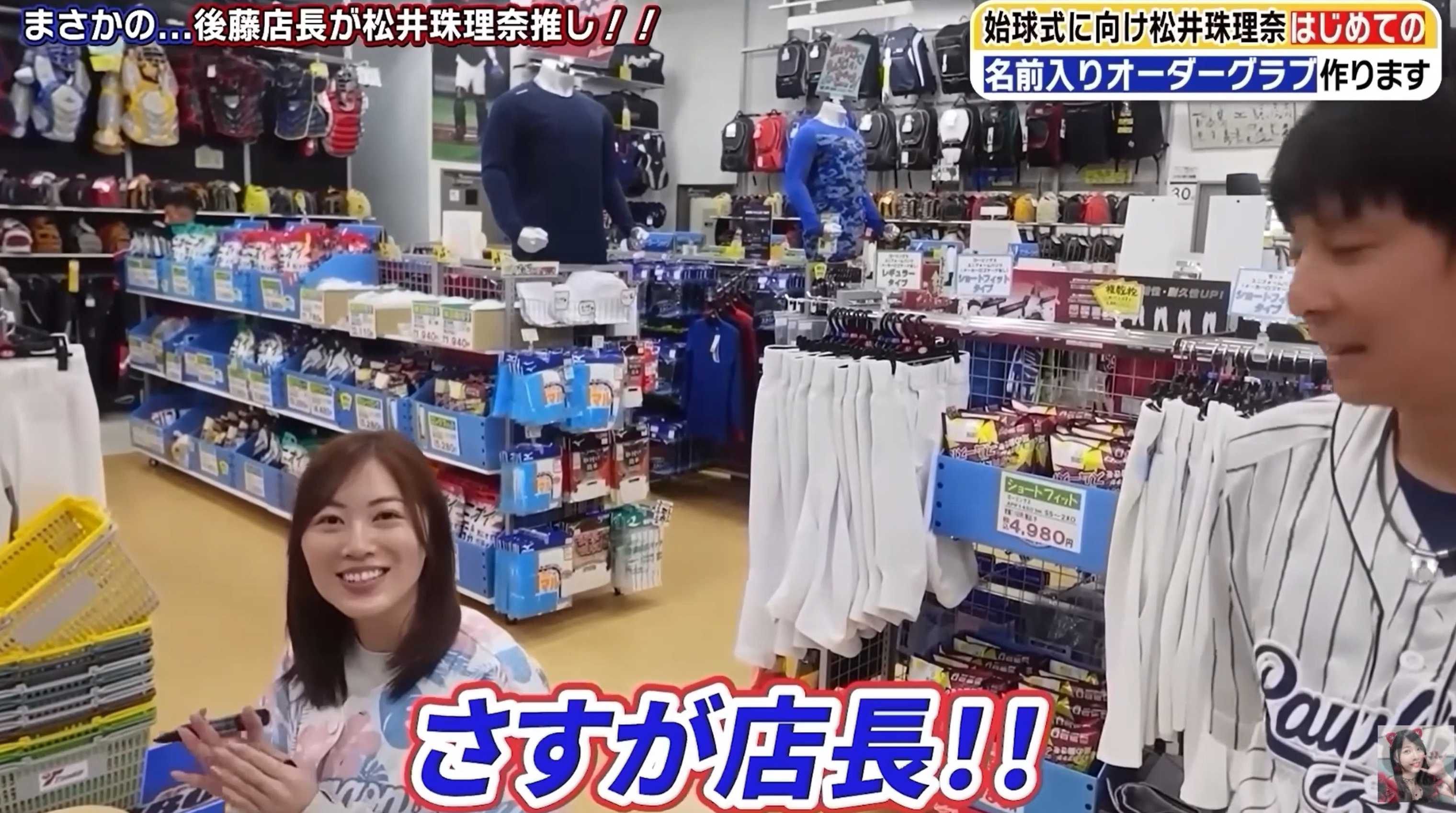 松井珠理奈さんが始球式用グローブを作りに行ったお店の方が、まさかの松井珠理奈大ファンという偶然、その模様が松井珠理奈さん公式YouTubeで公開されています。