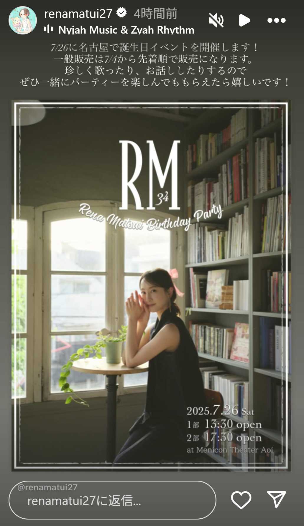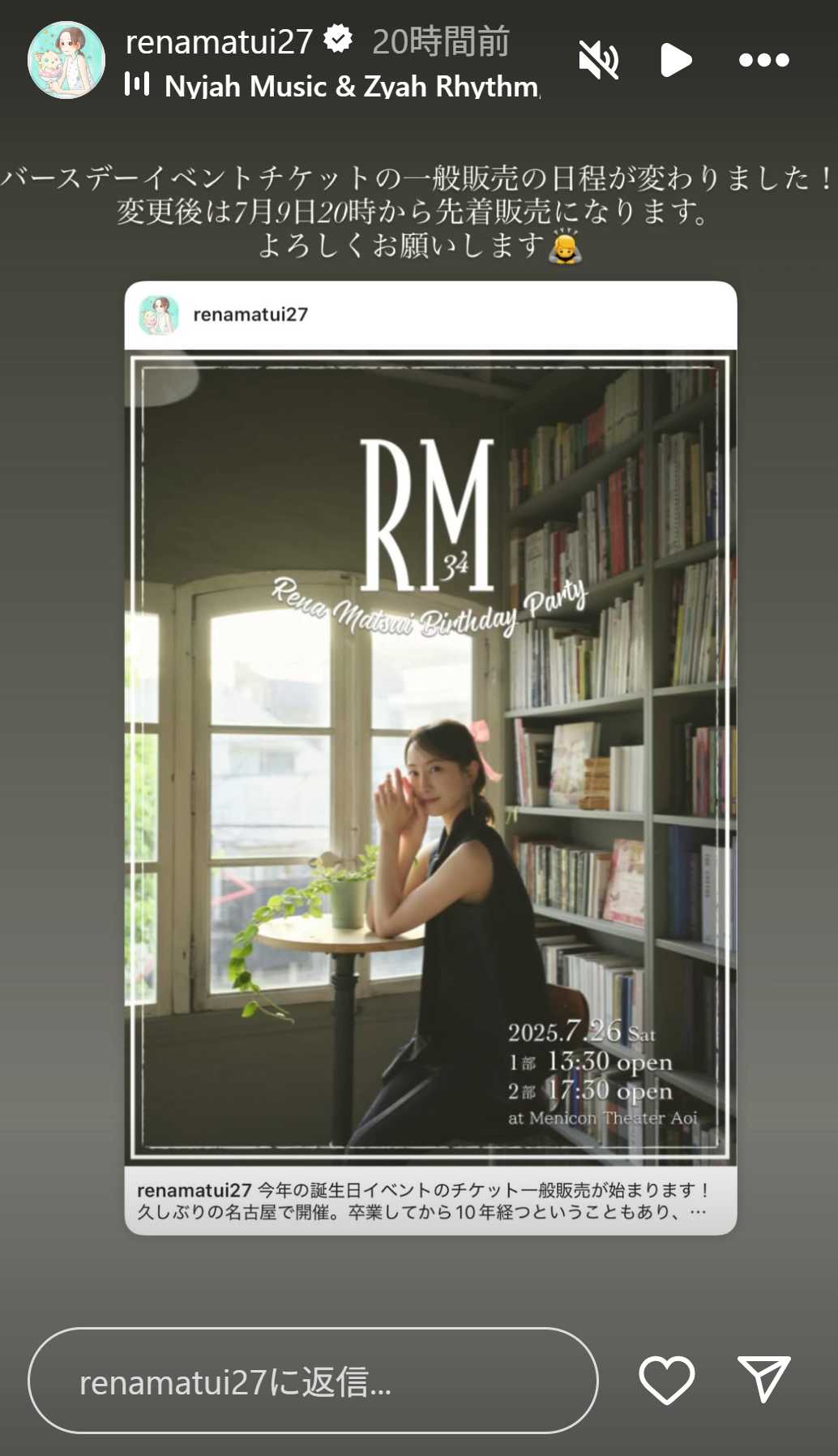 — 松井玲奈オフィシャルインフォメーション (@rena_info) July 2, 2025