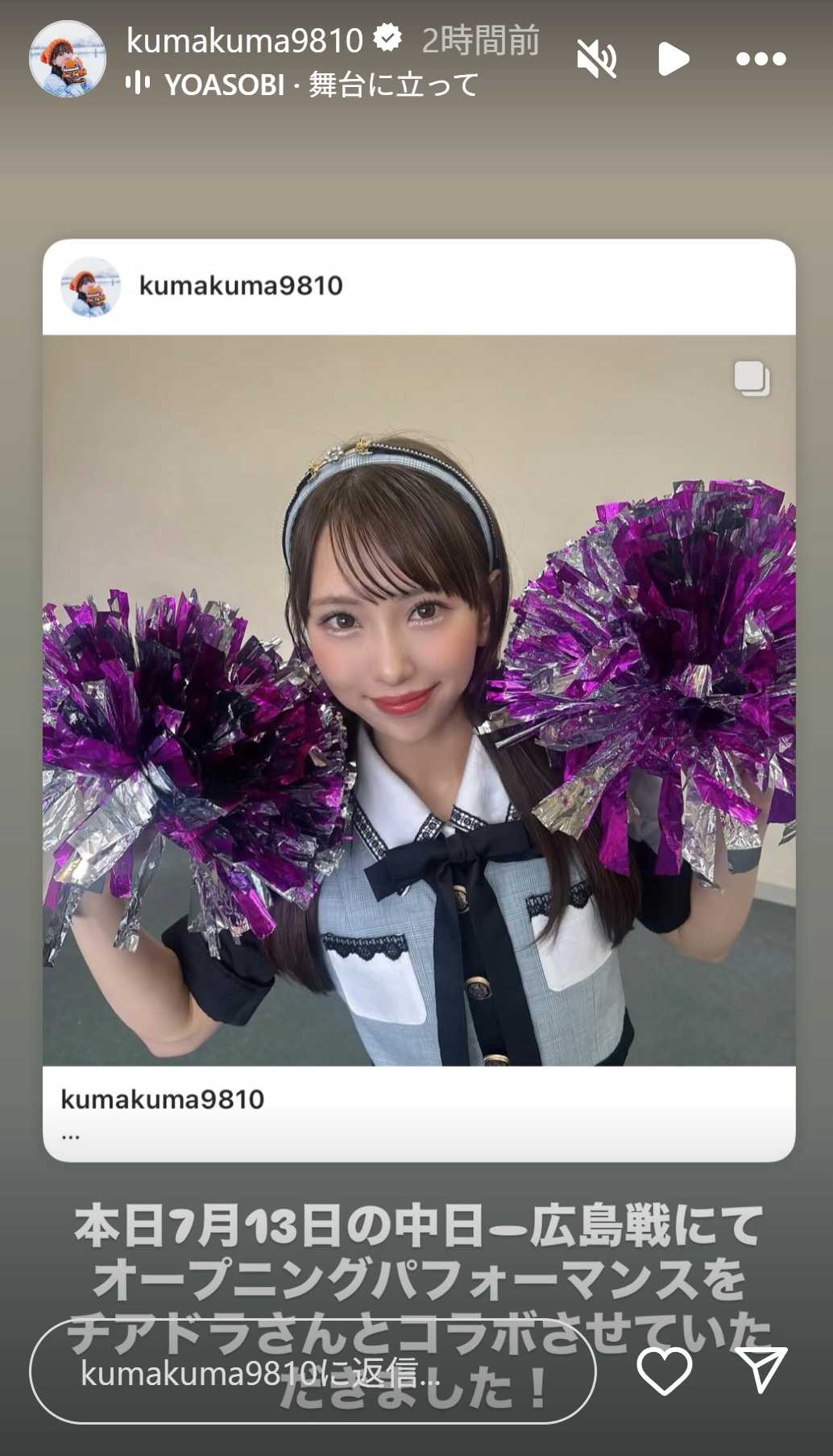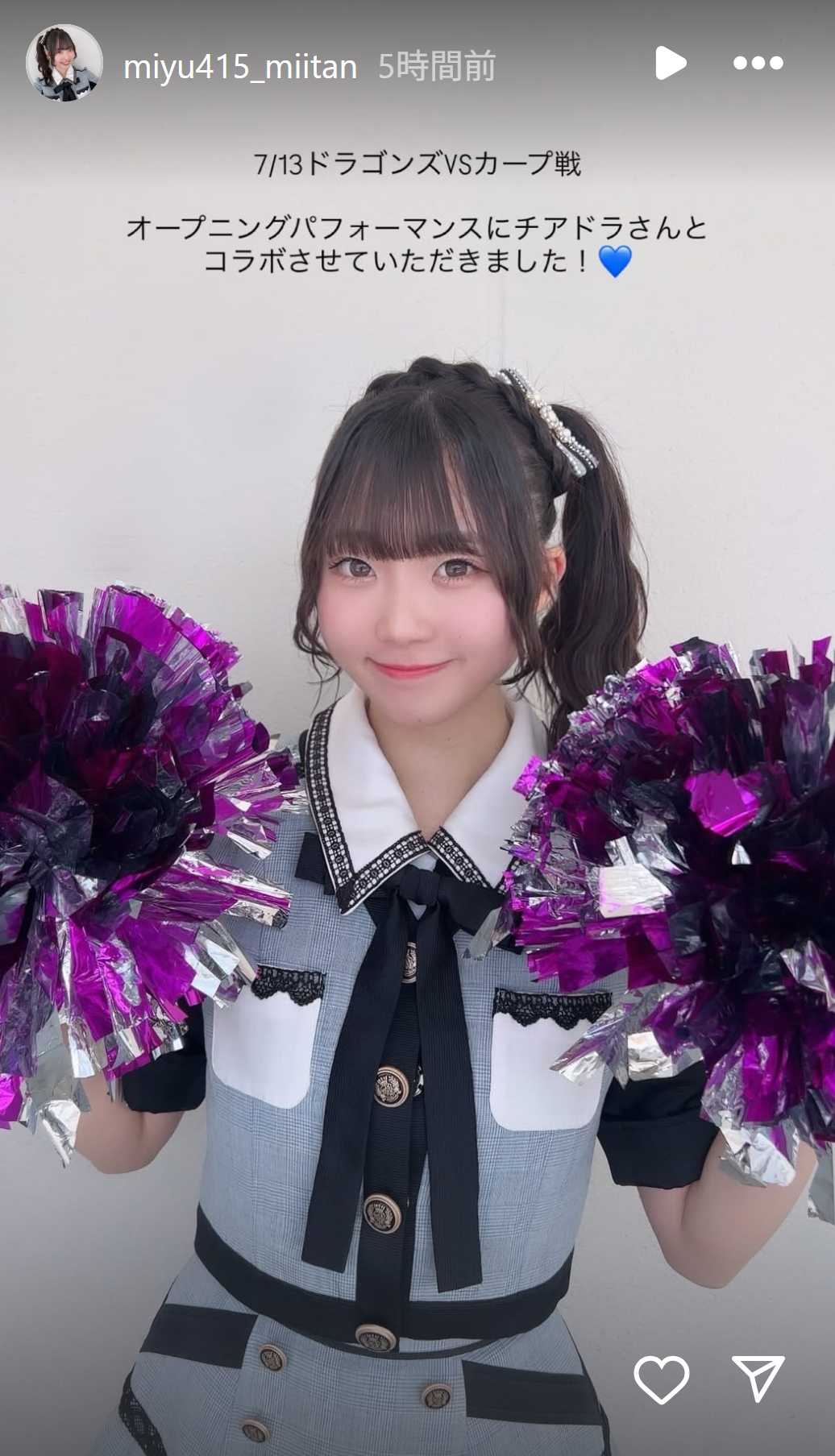 2025年7月13日、中日・広島戦のオープニングパフォーマンス、チアドラコラボに出演された