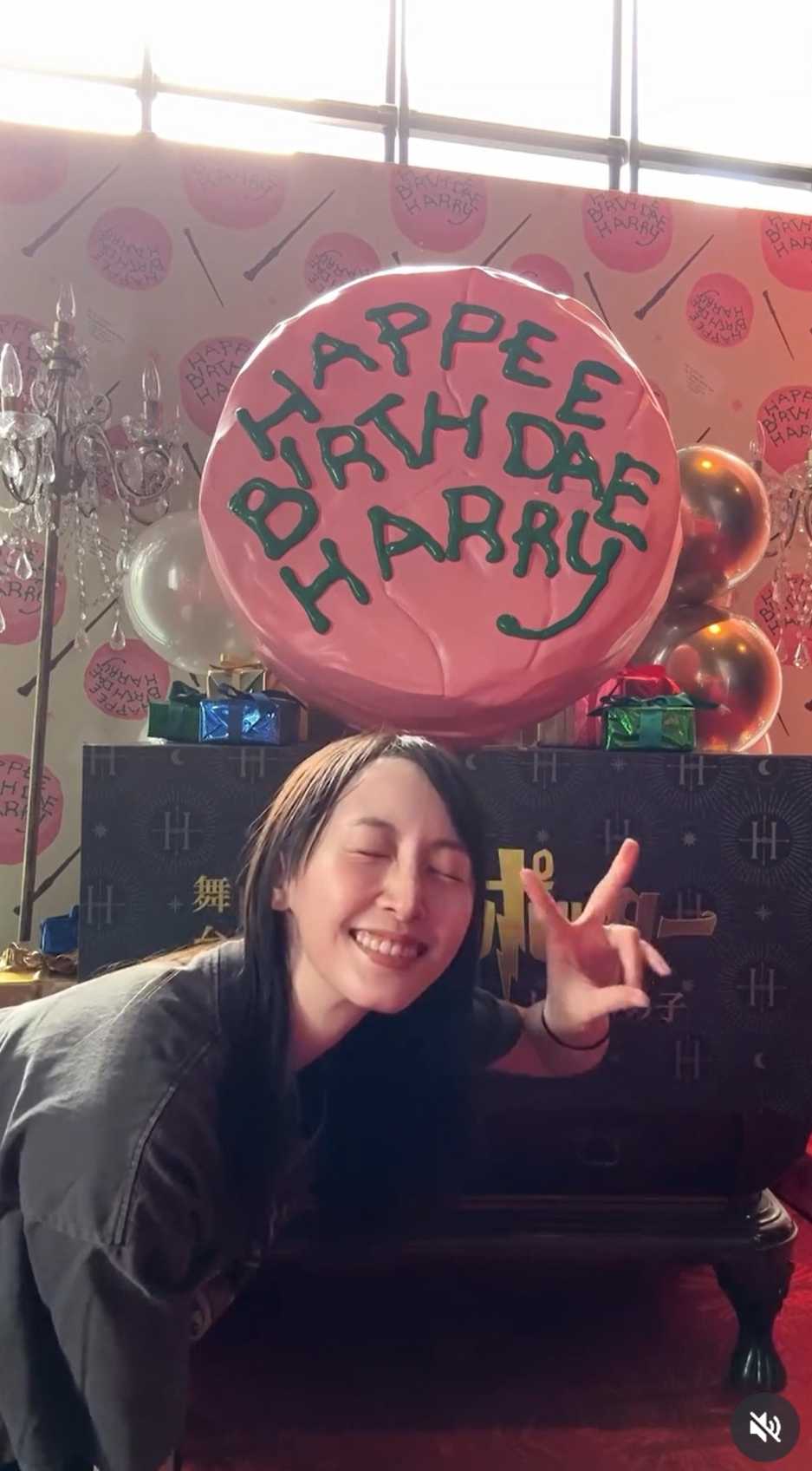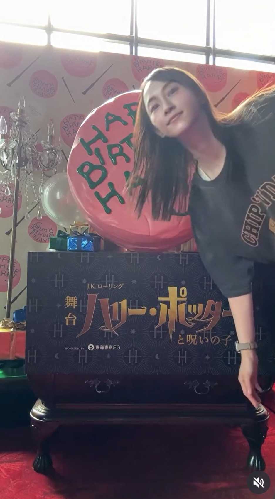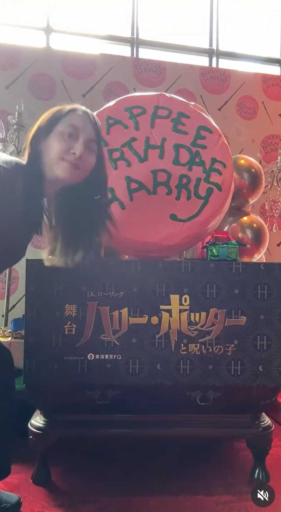 しかも劇場がハリーの誕生日のお祝い装飾でいっぱいなので、さも自分のためのプロップスかのように撮影しました!!!がはは!!