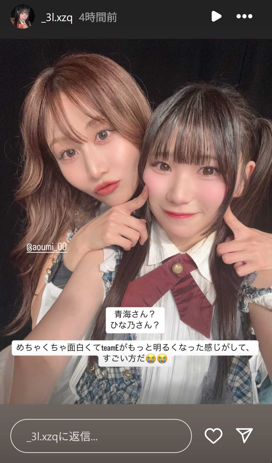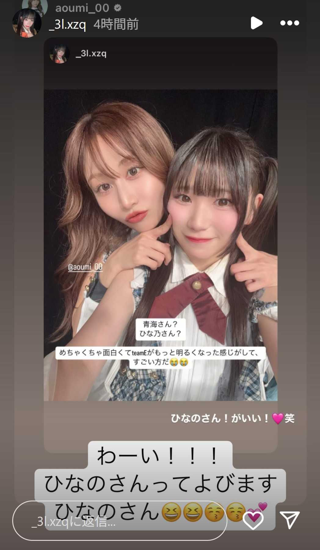 #青海ひな乃 さんと初めて公演に一緒に出られて、ツーショットも初めて撮れて嬉しかったです🥹💗
