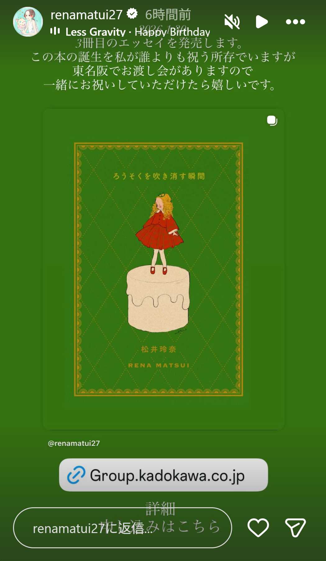 【購入者抽選・限定150名様】 松井玲奈さん『ろうそくを吹き消す瞬間』(KADOKAWA)発売記念サイン本お渡し会【大阪】https://t.co/GlTKKwReYy