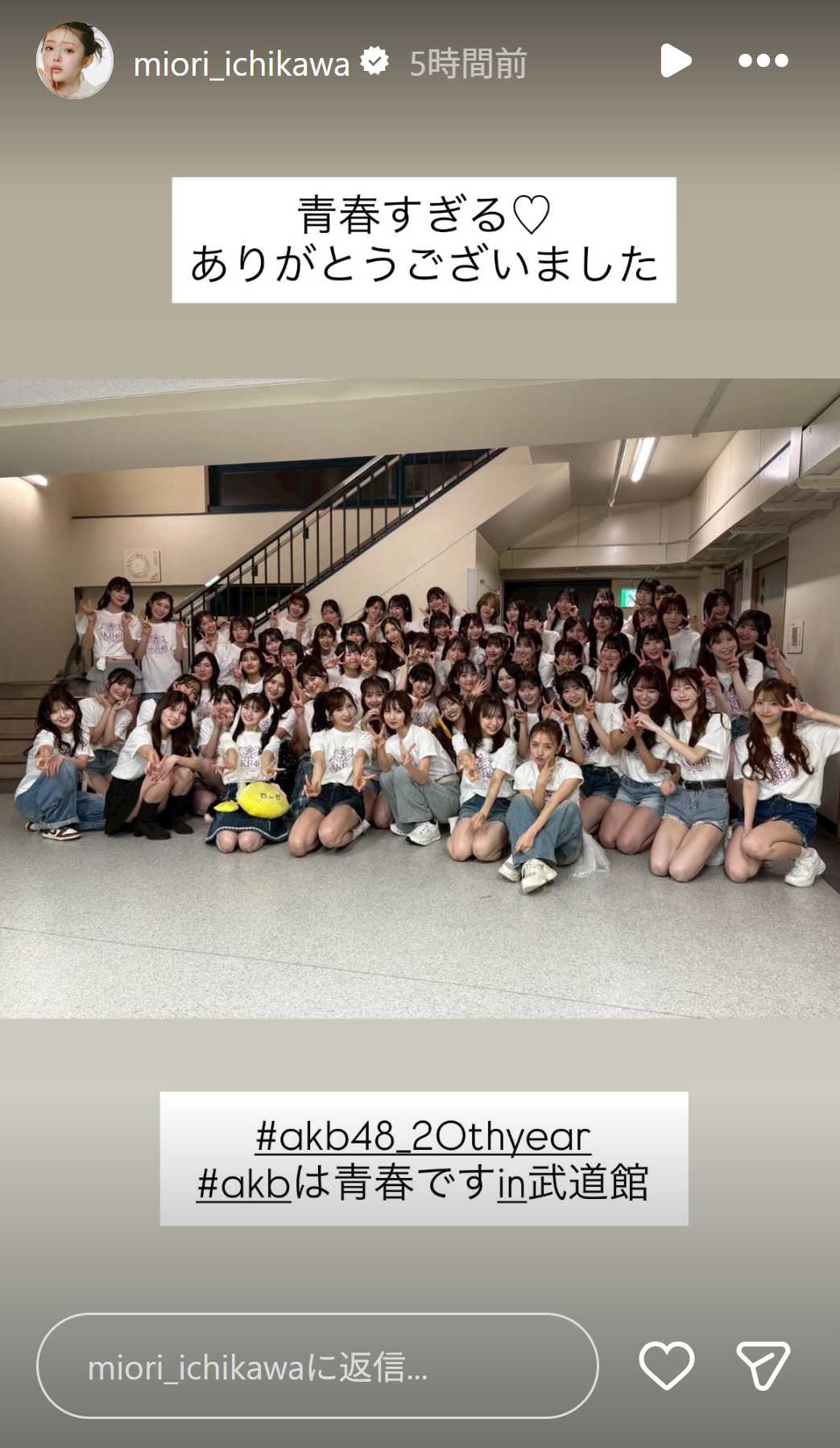 最高に楽しかったです💛#AKB48_20thYear #AKBは青春ですin武道館 pic.twitter.com/lFPOJi4AJl