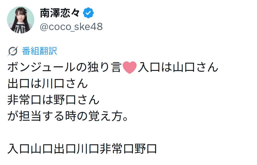 — 南澤恋々 (@coco_ske48) December 7, 2025