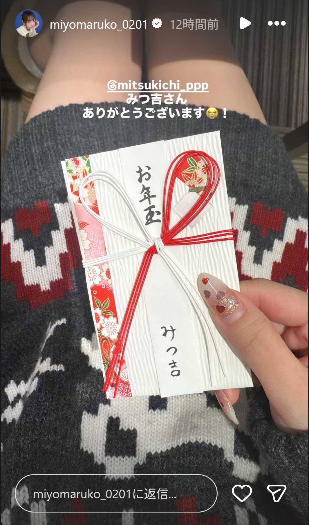 野村実代さんは、みつ吉さんからお年玉を貰ったようです。