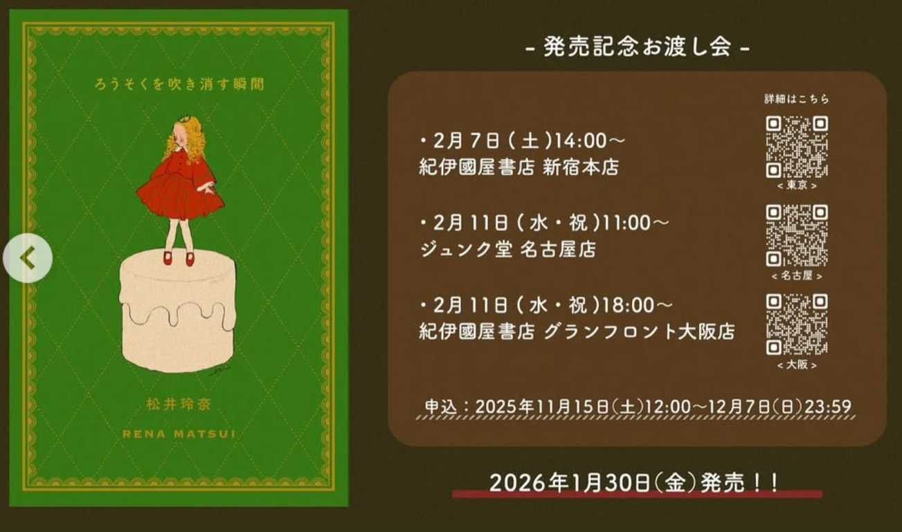 ・ SKE48まとめろぐっ! : 松井玲奈、3冊目のエッセイ『ろうそくを吹き消す瞬間』発売 🕯お渡し会も🕯