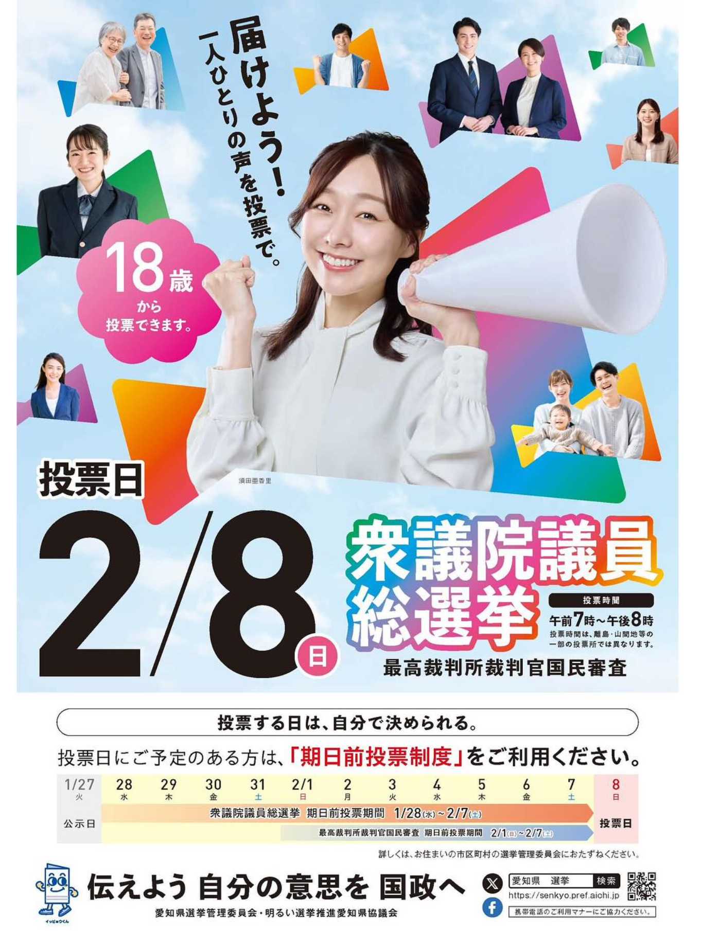 愛知県選挙管理委員会では、2026年2月8日(日)執行の第51回衆議院議員総選挙について、有権者に選挙への関心を持っていただくとともに、選挙期日等を周知するための特設Webページを開設しました!