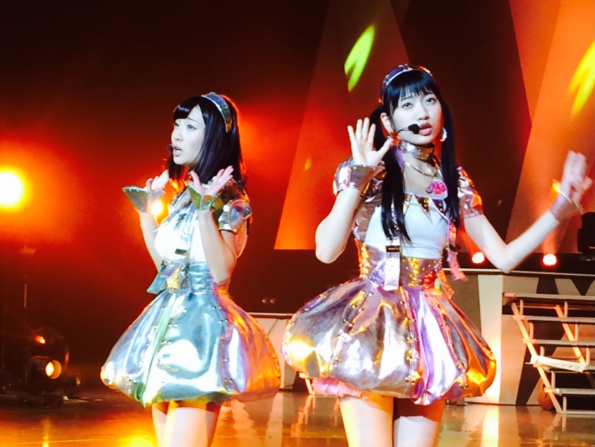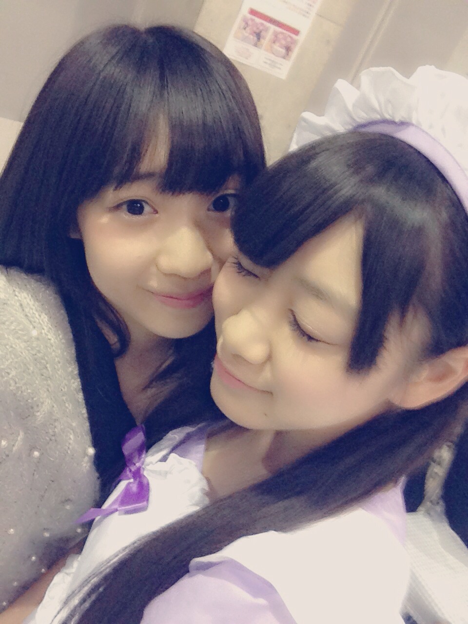 この画像の本当の出所は、AKB48の姉妹グループSKE48の終身名誉研究生・松村香織さんがGoogle にアップした動画。2014年1月23日から26日にかけて行われたAKB48グループのイベント「AKB48リクエストアワーセットリストベスト200 2014」の練習風景や舞台裏を撮影したものです。左に映っているのは梅本泉さん、右は秋吉優花さん。2人ともHKT48のメンバーで、今回のFNS歌謡祭には出演していません。